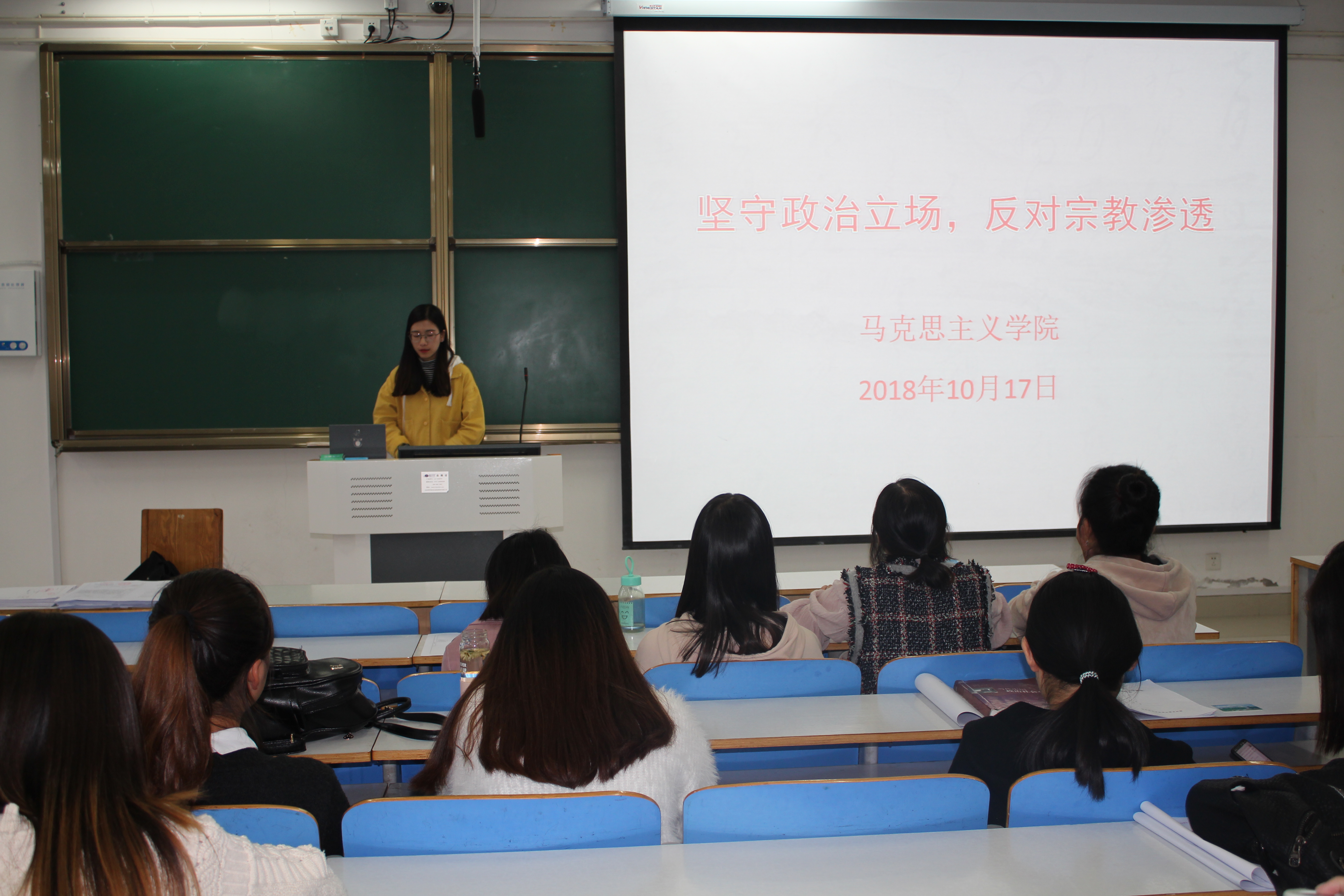 为防止宗教渗透,牢固金年会官网学子正确政治立场,金年会jinnianhuicom2015级思想政治教育专业一班、二班在社科楼516教室召开 “坚守政治立场,反对宗教渗透”主题班会。团委书记曹栋与金年会官网2015级思想政治教育专业全体学生共同参与班次本次班会。班会由学生辅导员张英主持。
