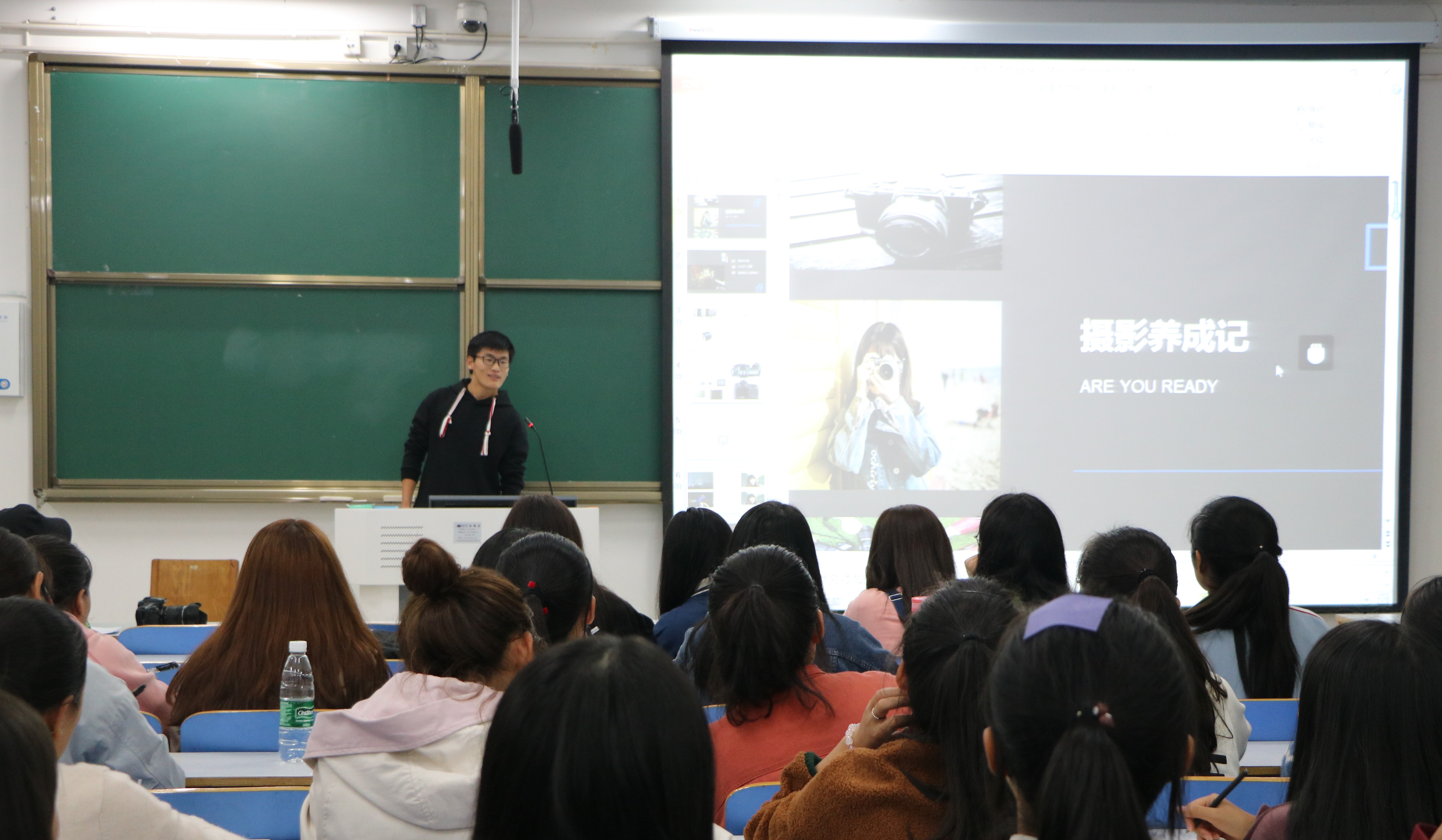 会上,闫家豪和梁维莉就相机使用和照片构图两方面进行讲解。闫家豪着重对相机的基本构造和常见的相机模式进行介绍,并向大家现场演示如何正确使用相机。梁维莉从拍摄照片的角度、光线进行说明。一是拍摄人物时构图要正,凸显人物主体;二是拍摄角度要根据不同场所灵活变化;三是现场光线提前调整,确保拍照时光线适宜。随后,胡晨佳结合自身经验,就撰写新闻稿方面进行讲解。她提出三点建议,一是,要注重新闻内容的真实性与创新性。二是,要从整体上把握新闻主旨,理清新闻脉络。三是,平时要注重新闻素材积累,提高新闻修养。最后,与会学生提出在工作期间遇到的问题与困惑,胡晨佳、闫家豪、梁维莉针对问题作出认真解答,提出中肯意见。