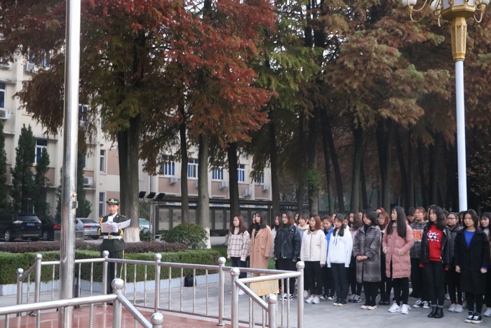 国旗招展,国歌嘹亮。11月19日清晨,金年会jinnianhuicom在行政楼前举行“奋斗青春”升国旗主题教育活动。党委副书记何晓坚、辅导员曹菁菁、2018级全体同学及我校国旗护卫队共同参加本次主题教育活动。活动由国旗护卫队杜娟主持。