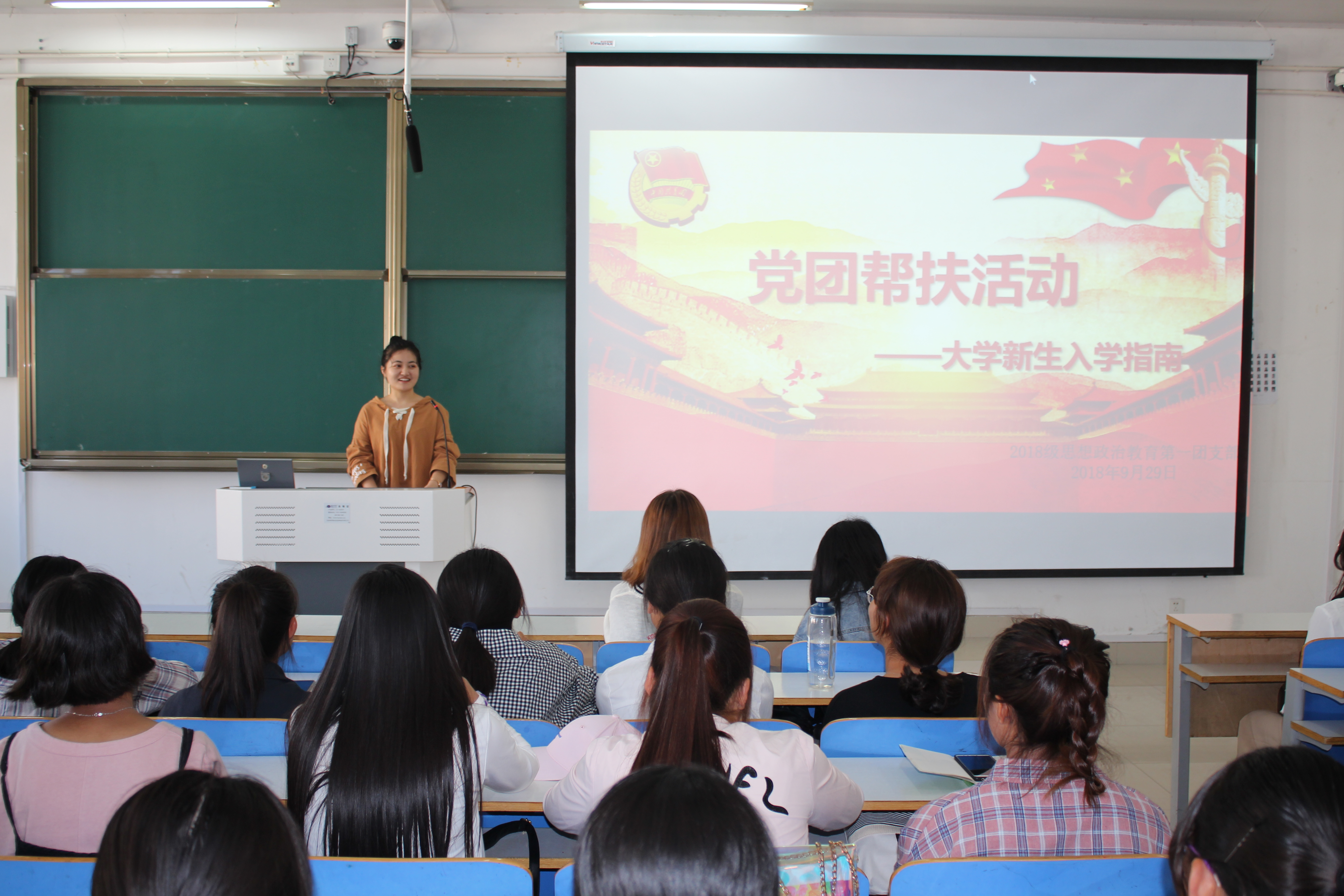 为响应学院党团建设的号召,增强党团组织的凝聚力,9月29日上午,金年会官网在社科楼516教室举行了党团帮扶会议。专职辅导员曹菁菁和2018级全体同学共同参加此次会议。会议由靳雨露,黄子晋共同主持。