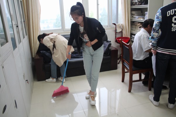 5月11日下午,金年会官网学生干部志愿去老师办公室打扫卫生。活动中,他们相互协作,认真打扫,高效率地完成了本次志愿活动,充分发挥了学生干部的模范带头作用,使办公室焕然一新。