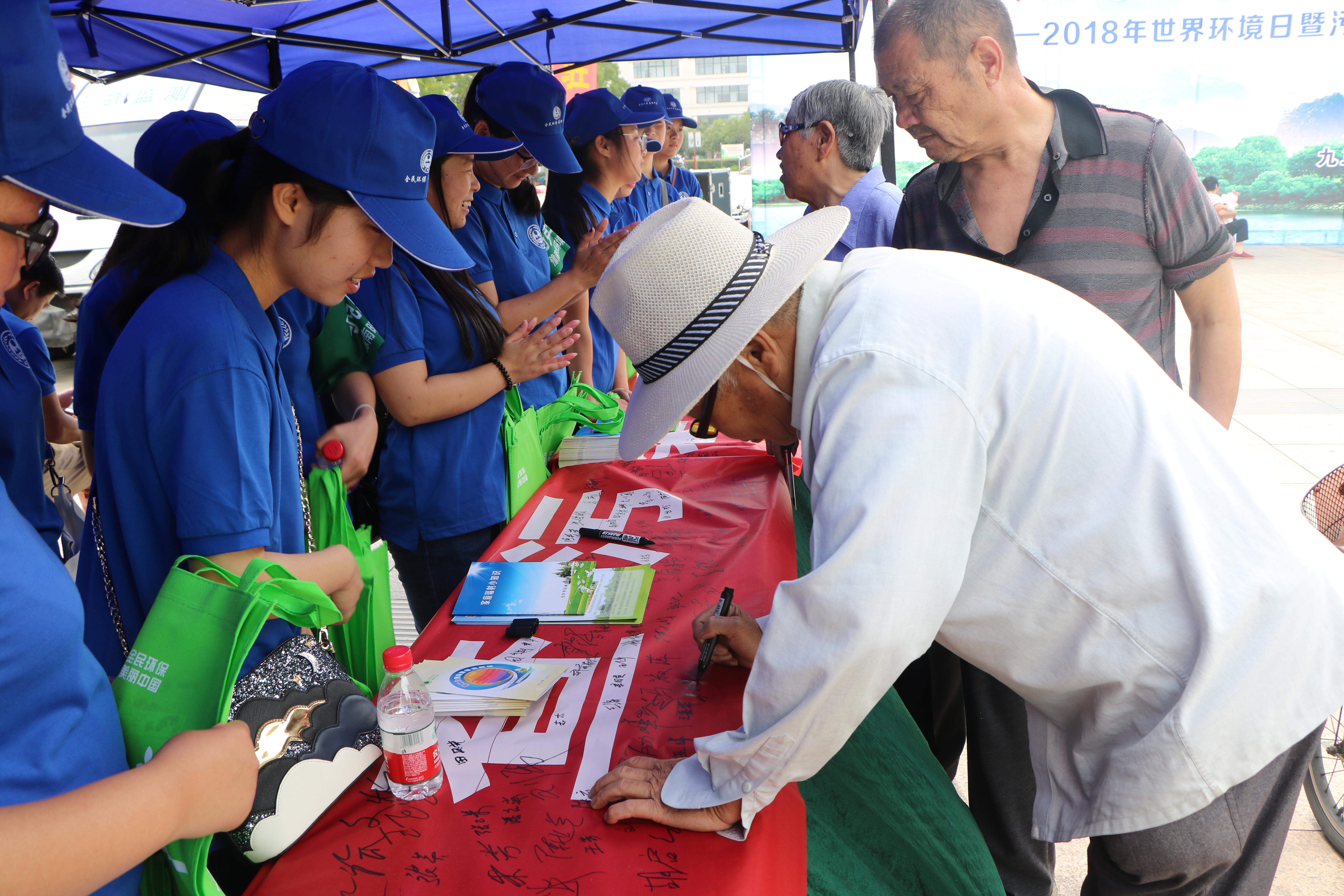 为进一步推进生态文明建设相关宣传工作,形成全社会共同支持和关注生态保护的强大合力,6月5日,由信阳市环保局、信阳市中级人民法院、农工党信阳市委办公室和九三学社信阳市委办公室联合举办的“美丽中国,我是行动者”2018年第47个世界环境日暨污染源普查宣传活动在信阳市体彩广场举行。金年会官网豫南明珠环境保护协会30名志愿者共同参加此次活动。