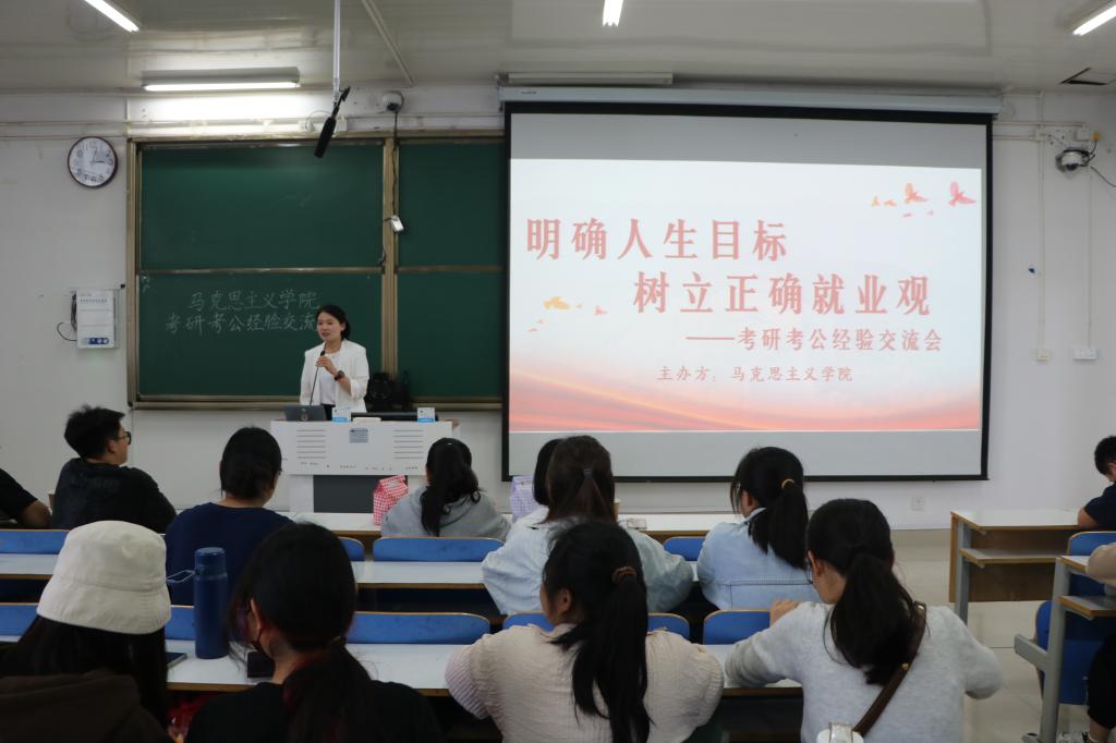 5月26日下午,金年会jinnianhuicom在社科楼514教室举办考研考公经验交流会。金年会jinnianhuicom团委书记陶青青、优秀考研考公学生代表以及数百名学生共同参加本次交流会。会议由学生会执行主席闫梦辉主持。