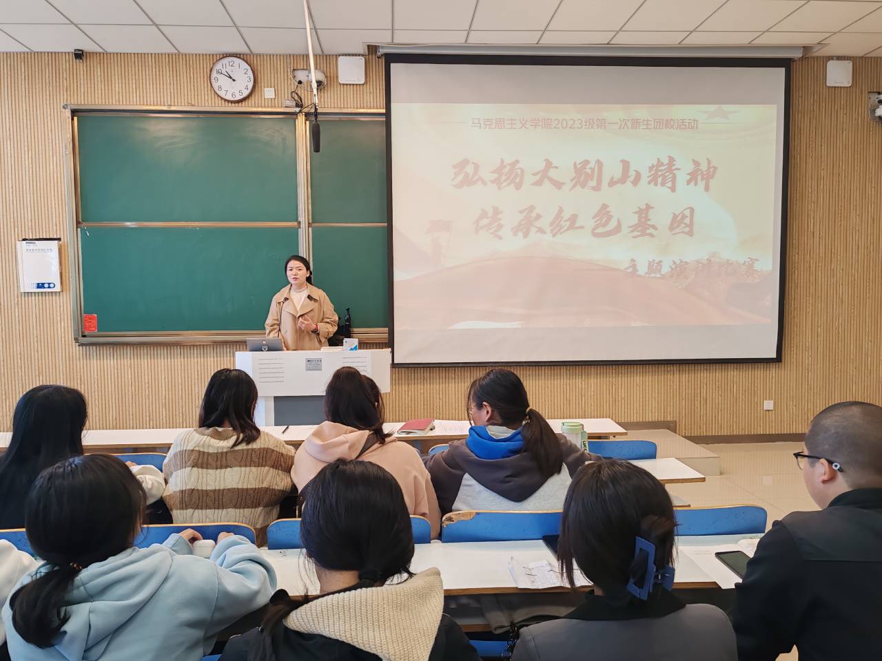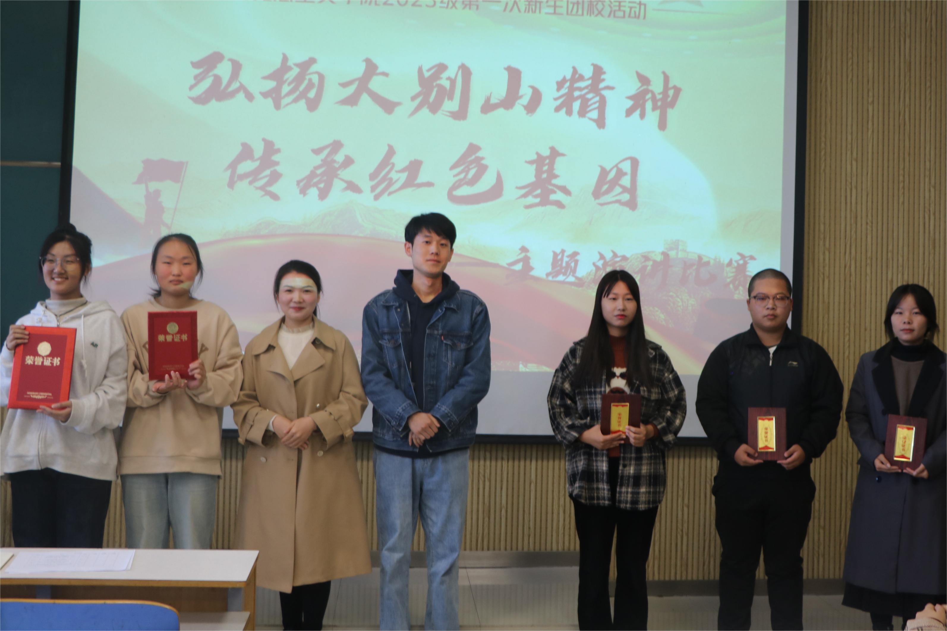 为弘扬大别山精神、发挥红色基因育人功能,11月7日上午,金年会jinnianhuicom在社科楼515教室举办“弘扬大别山精神,传承红色基因”主题演讲比赛暨2023级新生第一次团校活动。金年会官网团委书记陶青青、新生辅导员沈海蓄以及主席团成员担任评委,比赛由分团委副书记琚涵主持。