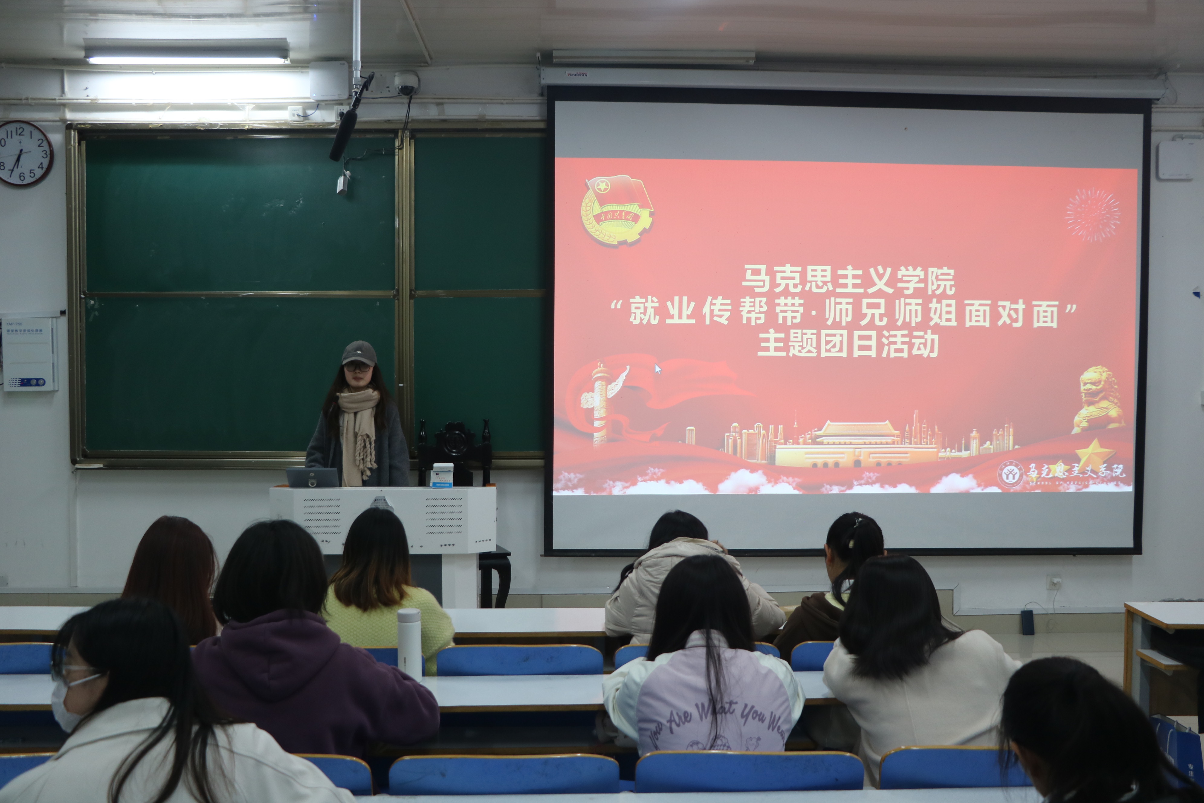 为强化就业育人实效,促进金年会官网毕业生高质量就业,11月17日下午,金年会jinnianhuicom团委联合考研服务社在社科楼515教室举办“就业传帮带·师兄师姐面对面”主题团日活动。本次活动由团支部副书记杨可主持,金年会官网学子共同参加。