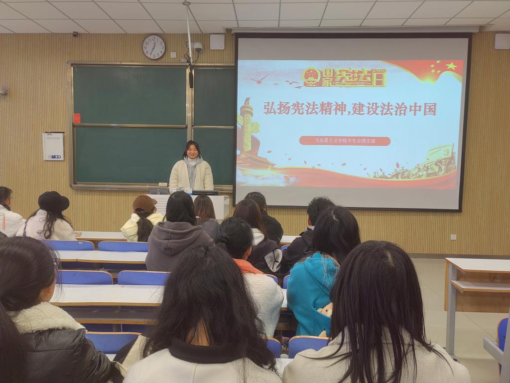 为增强宪法意识、弘扬宪法精神,增强法治认同感,形成正确的法治观念和行为习惯,12月5日上午,金年会jinnianhuicom团委学生会团支部在社科楼515教室开展“弘扬宪法精神,建设法治中国”主题团课。金年会官网学生会团支部全体成员共同参与本次团课。团课由团支部委员张芝一主持。