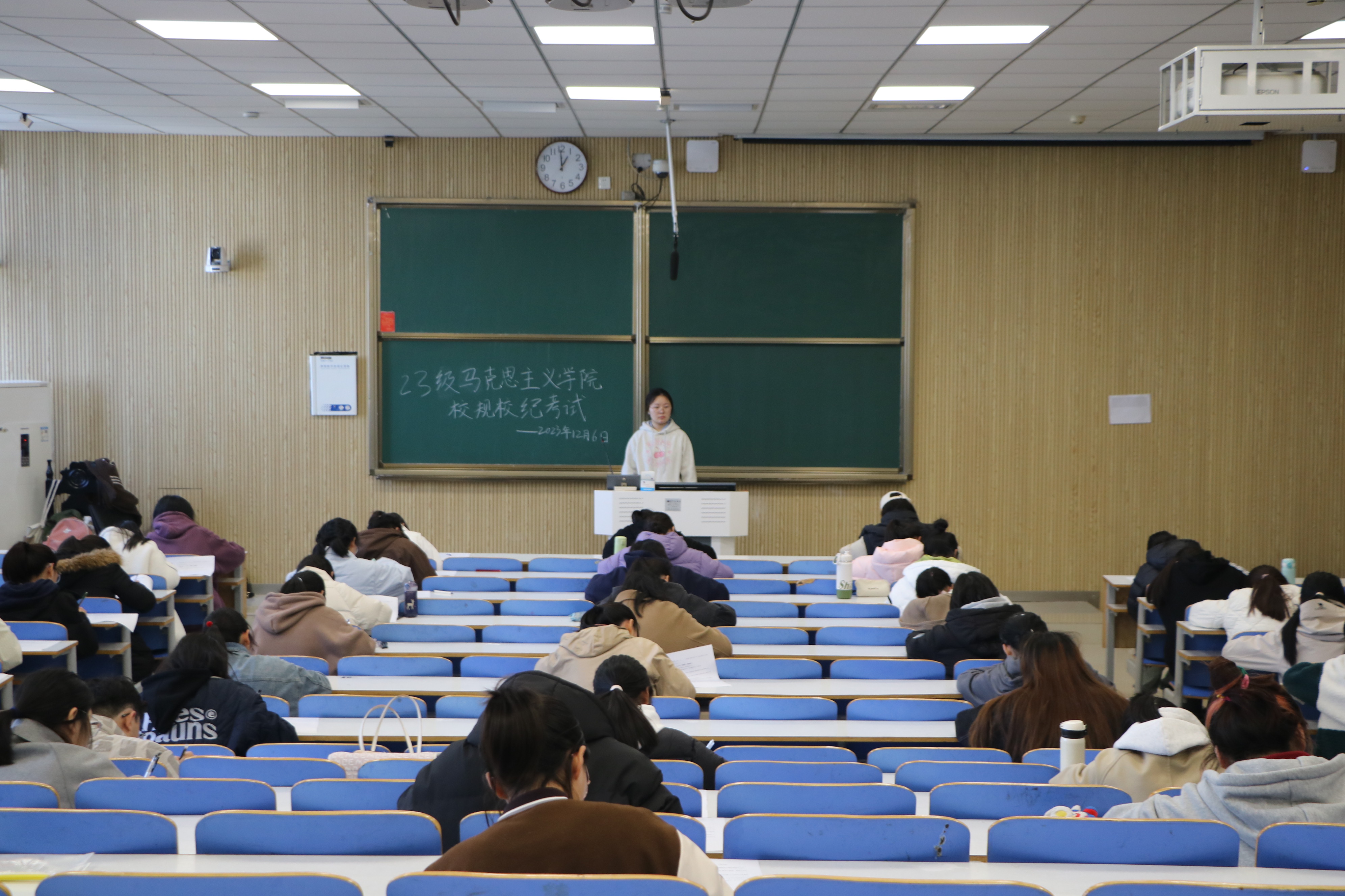 为深化学生规则意识、加强校风学风建设,推动学生管理工作的顺利开展,12月6日中午,金年会jinnianhuicom在社科楼514、515教室组织2023级新生进行校规校纪考试。金年会官网2023级全体新生共同参与考试。生活劳卫部郑慧芳、陈颖担任监考员。