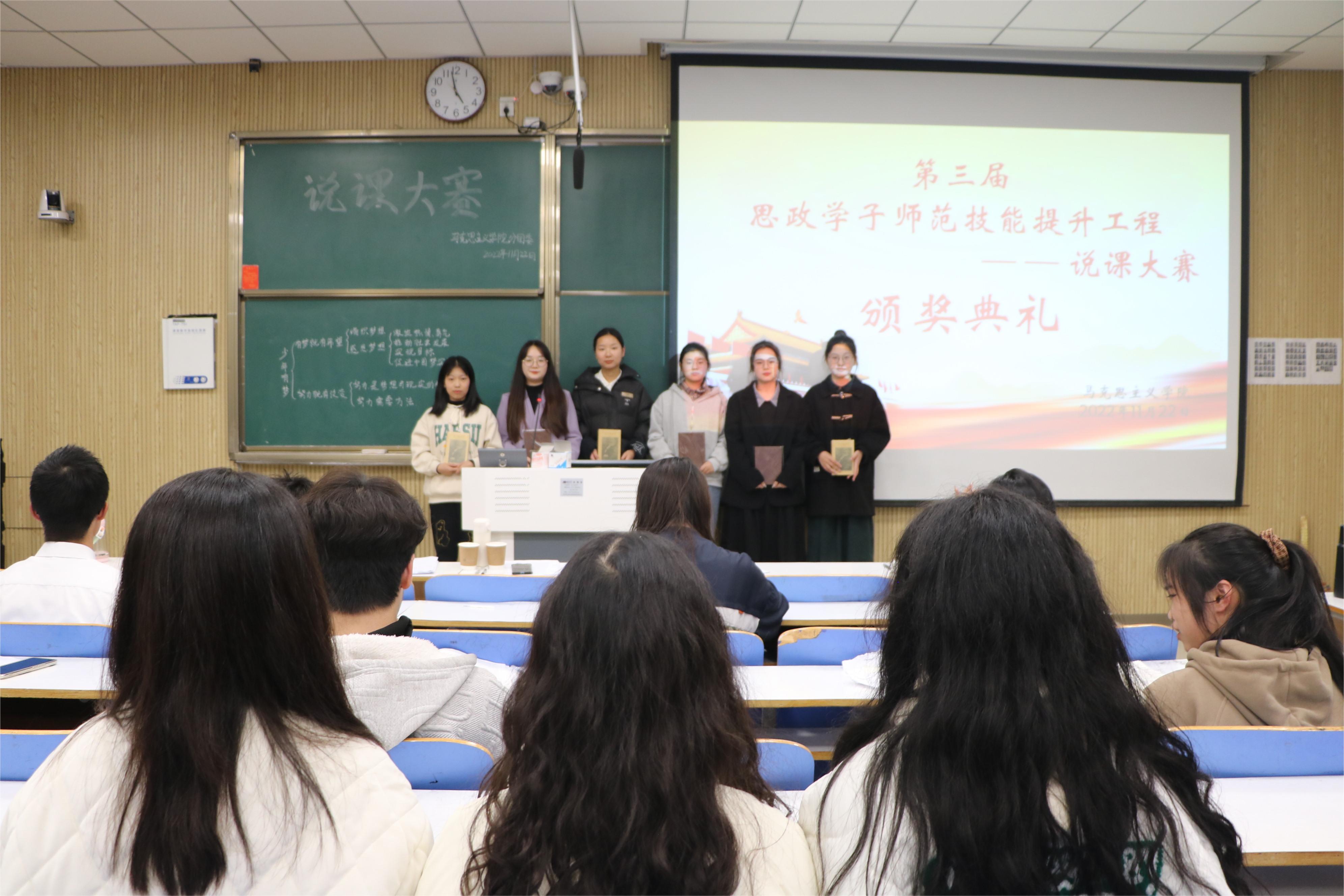 经过初赛的激烈角逐,最终共有10组参赛选手入围决赛。比赛过程中,各参赛选手从教学分析、教学过程、教学设计、教学反思等方面入手,以明确的说课目标、流畅的语言表达,赛出了思政学子的风采和水平。其中,张格格组以“生活难免有挫折”为主题,凭借落落大方的教学姿态、充分自然的眼神互动、清晰流利的语言表达、极具感染力的课堂讲解获得了评委老师的一致好评,最终荣获一等奖。比赛结束后,任婷围绕教师口语、教学设计、授课内容对此次比赛进行总结。她强调,未来想要成为一名出彩的思政教师,一要在教学中重视学生潜力的挖掘和实践的锻炼;二要注重教学研究,增强专业技能;三要锻造人格,不断提高自身素养。