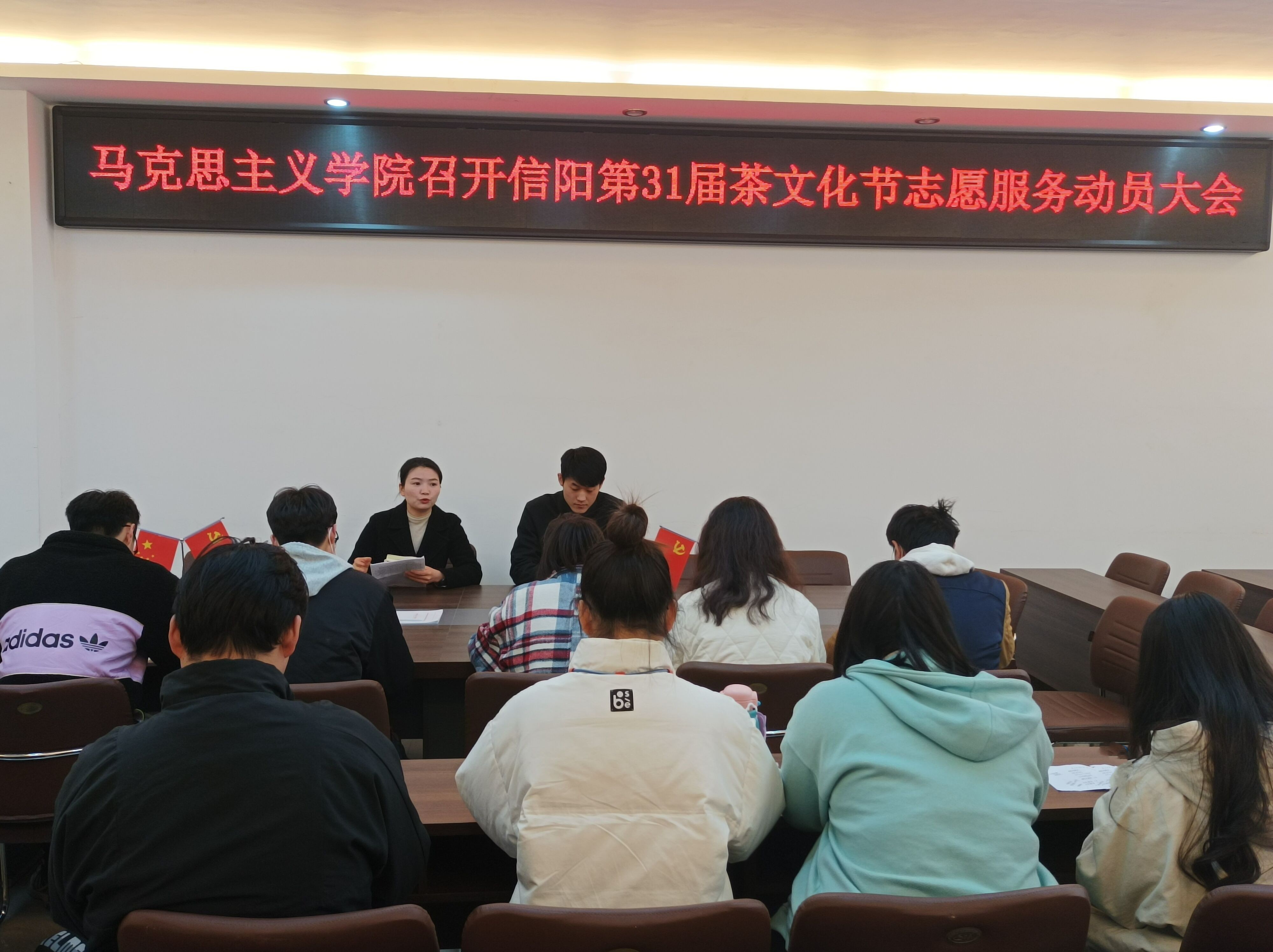 为弘扬青年“奉献、友爱、互助、进步”的志愿服务精神,3月16日上午,金年会jinnianhuicom在社科楼323会议室召开信阳第31届茶文化节志愿服务动员大会。金年会官网团委书记陶青青、辅导员沈海蓄、主席团成员及各班团支书共同参与本次会议。会议由陶青青主持。