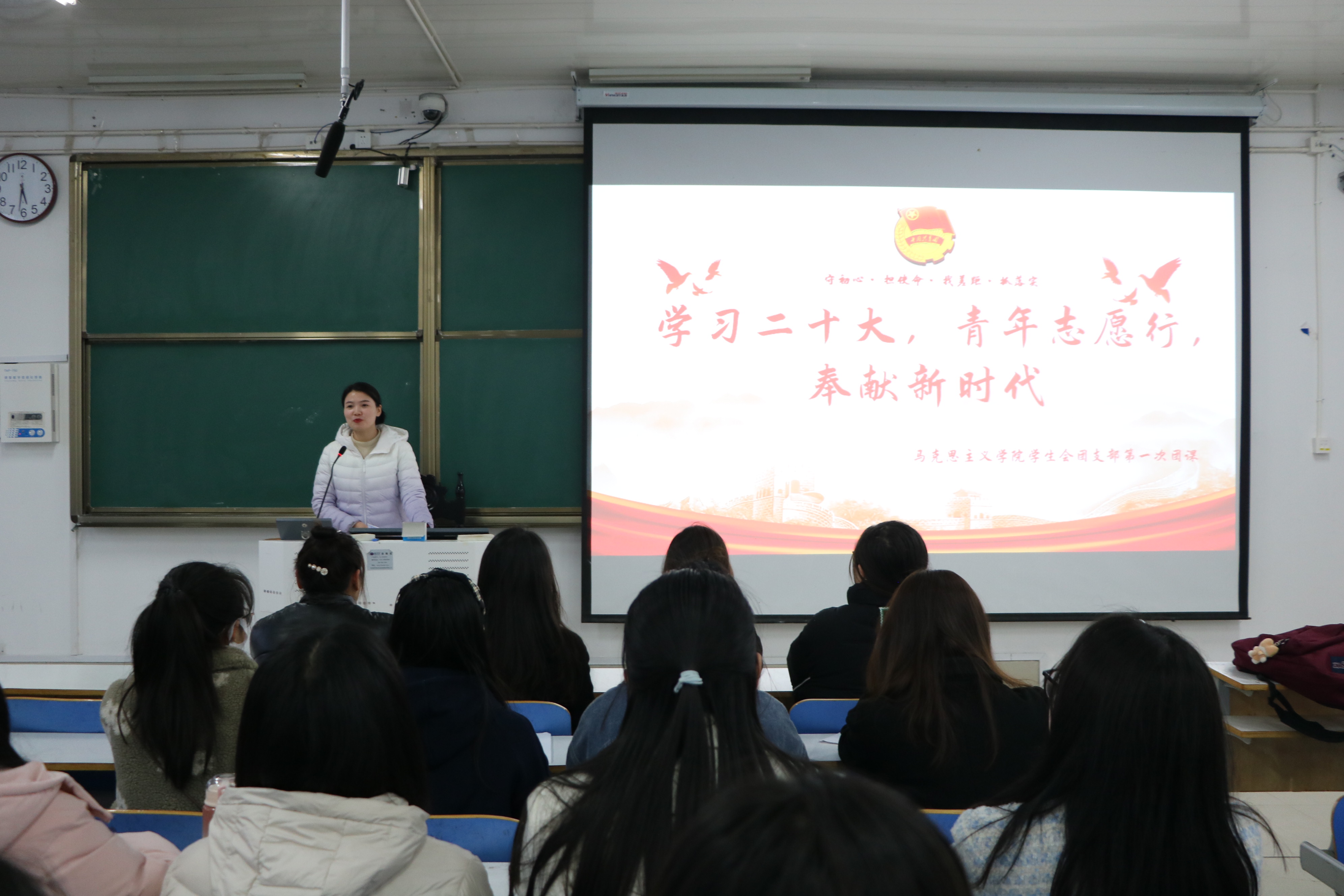 为深入学习贯彻党的二十大精神,鼓励青年积极参与志愿活动,3月22日下午,金年会jinnianhuicom在社科楼514教室开展以“学习二十大,青年志愿行,奉献新时代”为主题的学生会团支部第一次团课,团委书记陶青青和学生会团支部全体成员共同参加本次团课。团课由陶青青讲授。