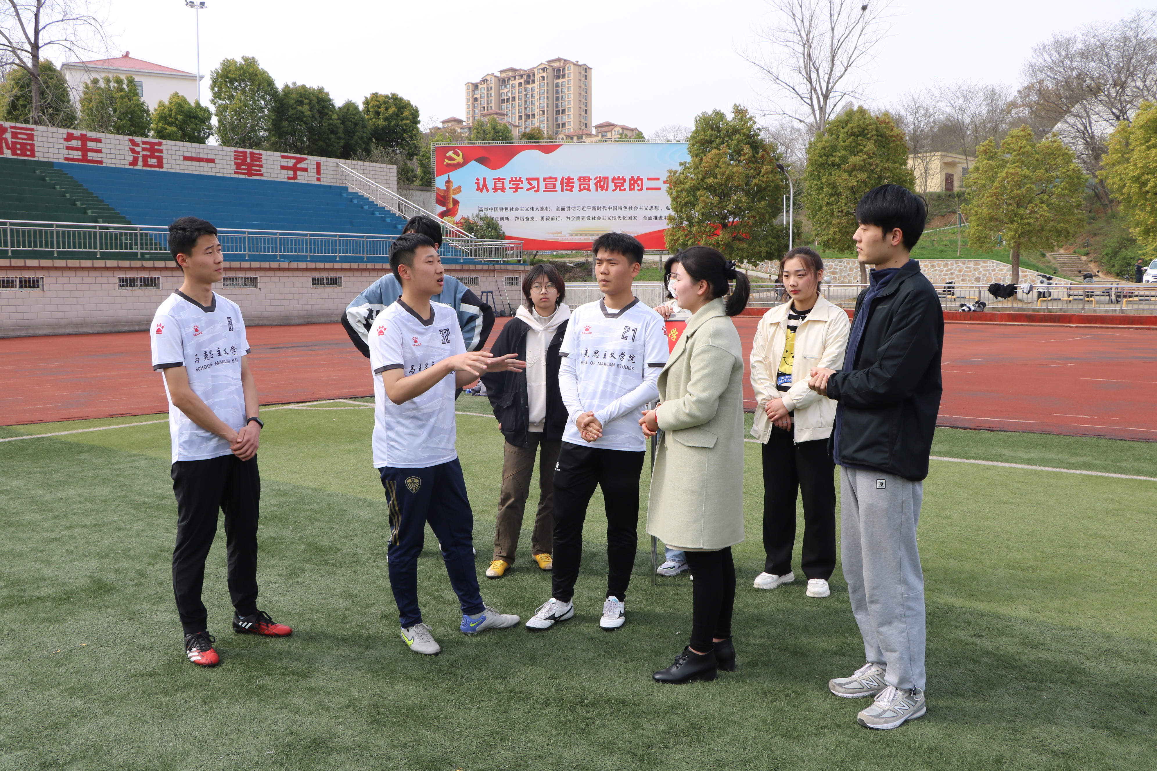 青春飞扬,乘风远航。3月28日下午,金年会jinnianhuicom在我校西操场召开足球队动员大会。金年会官网团委书记陶青青、专职辅导员沈海蓄、学生会主席团成员以及全体足球运动员共同参与此次大会。