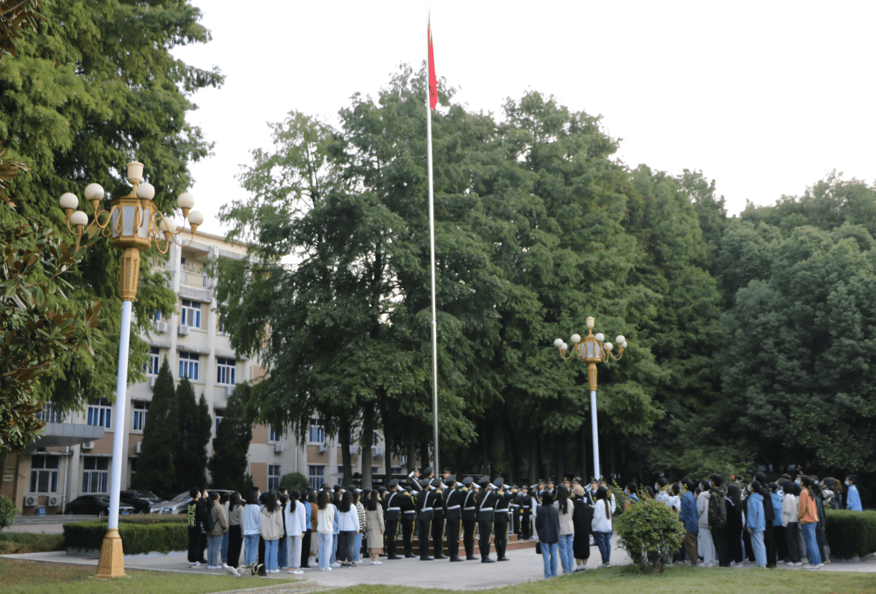 为进一步加强爱国主义教育,引导学生以更加饱满的精神状态践行青年使命,9月26日清晨,金年会jinnianhuicom于行政楼前举行升国旗仪式。我校国旗护卫队、金年会官网新生班主任吴梦云、学生会主席李明营、2022级四位新生班代及2022级全体新生共同参加此次升旗仪式。