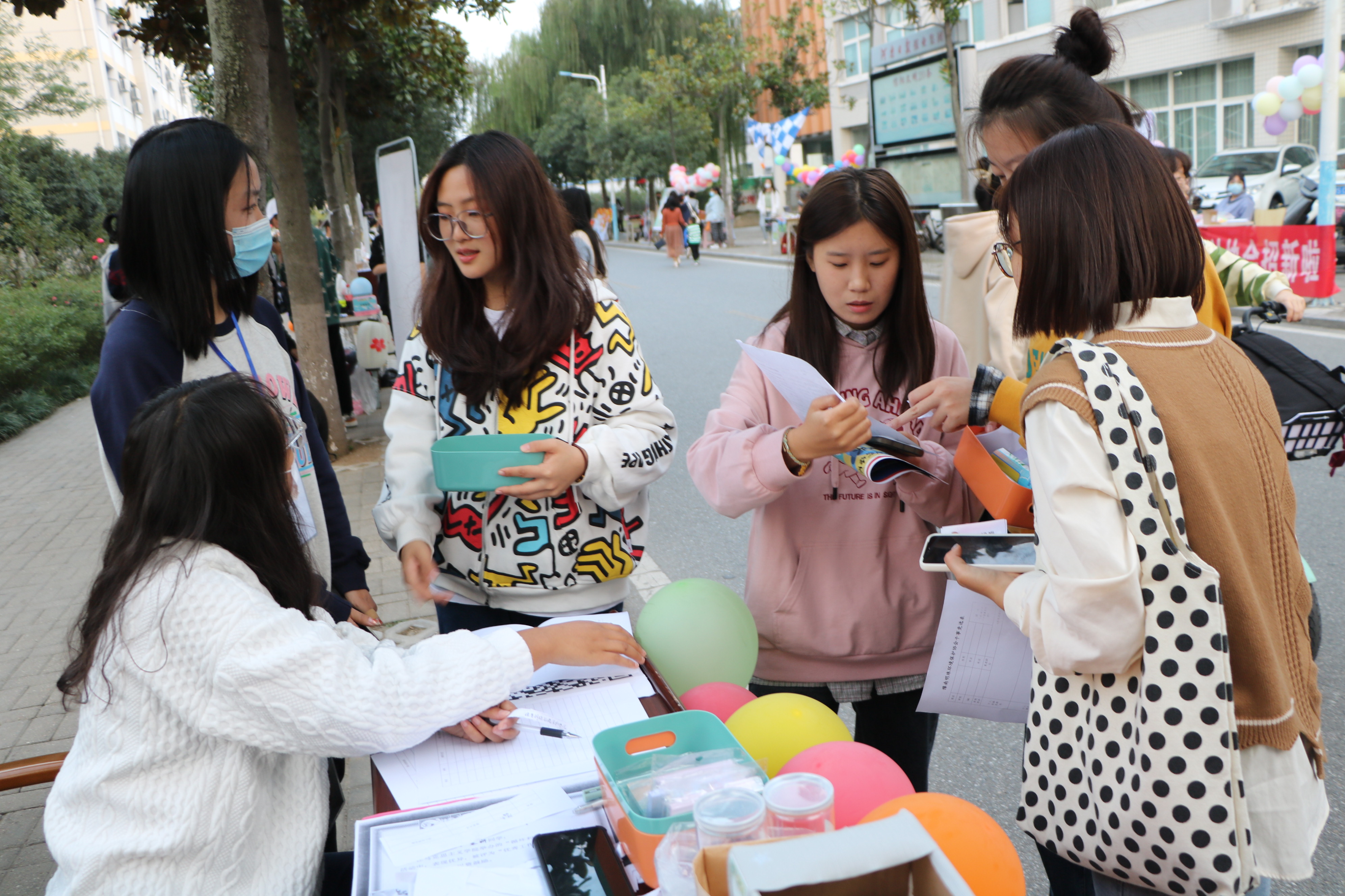 为丰富校园文化生活,搭建“五育”并举的社团育人平台,10月14日,由我校社团联合会举办的“百团大战”社团招新活动在思齐路正式拉开帷幕。在常态化疫情管理下,金年会jinnianhuicom南湖理论研讨社、豫南明珠环境保护协会和考研服务社分批次参与本次招新活动。
