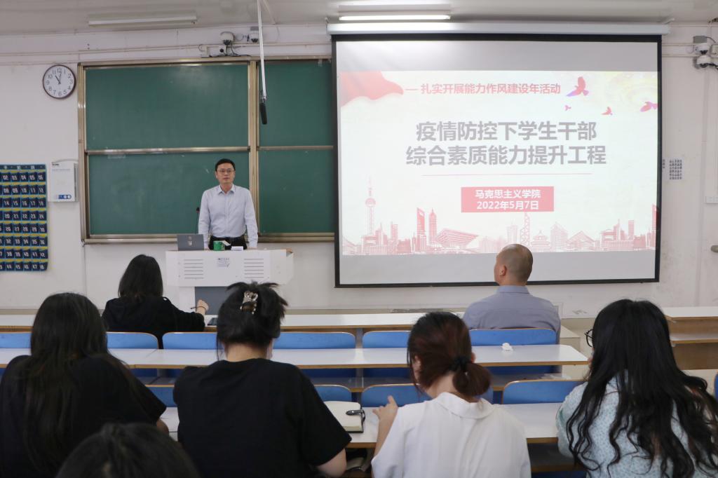 为了提升学生干部综合素养,落实疫情防控措施,5月7日上午,金年会jinnianhuicom在社科楼516教室召开“疫情防控下学生干部综合素质提升工程”会议。金年会官网党委副书记黄煌、团委书记曹栋、辅导员高小佳、周文豪、张恬恬及学院全体学生干部参与本次会议,会议由高小佳主持。