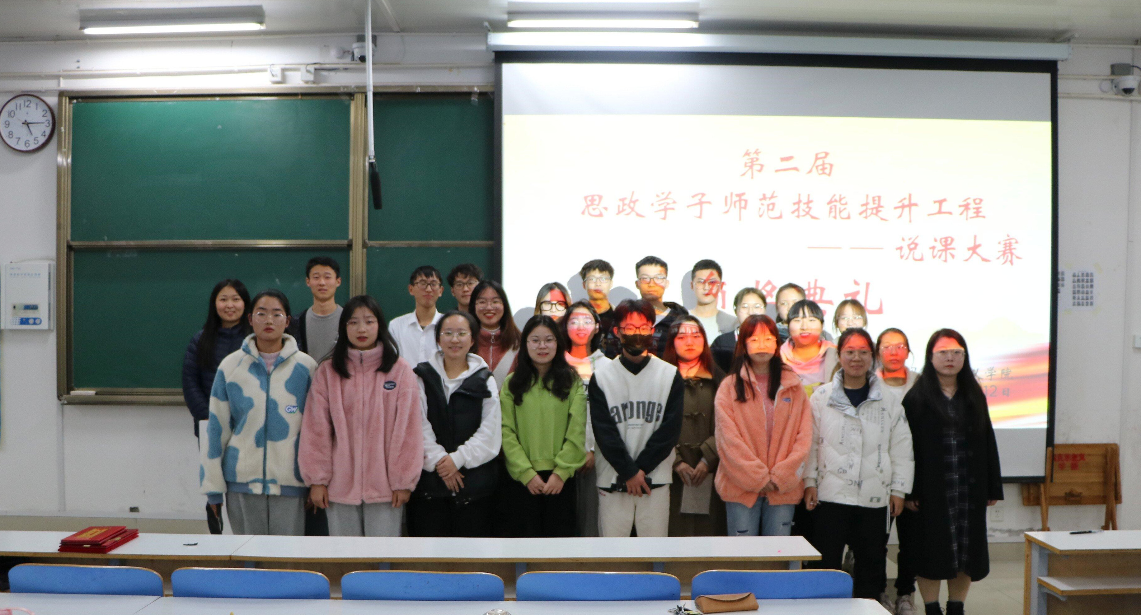 11月12日下午,由金年会jinnianhuicom团委学生会学术科技部、南湖理论研讨社共同组织的说课大赛颁奖典礼在社科楼516教室成功举办。金年会官网团委老师高小佳、分团委副书记韩笑及学术科技部负责人申畅畅、杨煜琳为获奖选手颁奖,本次颁奖典礼由雷江涛主持。