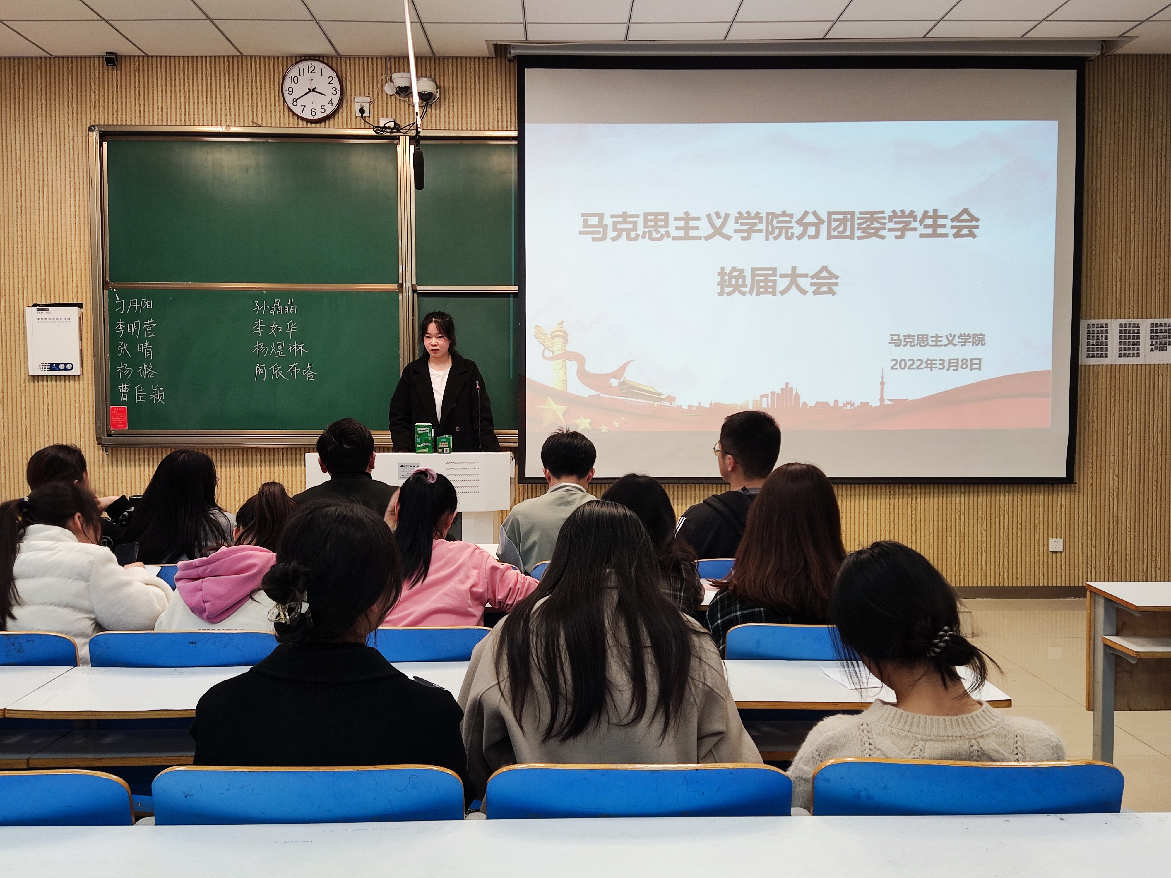 3月8日下午,金年会jinnianhuicom在社科楼515教室召开2022年分团委学生会主席团换届竞选大会。金年会官网团委书记曹栋、现任主席团成员、学生会各部门、社团及各班级负责人共同参与本次竞选。本次竞选由周明洋主持。