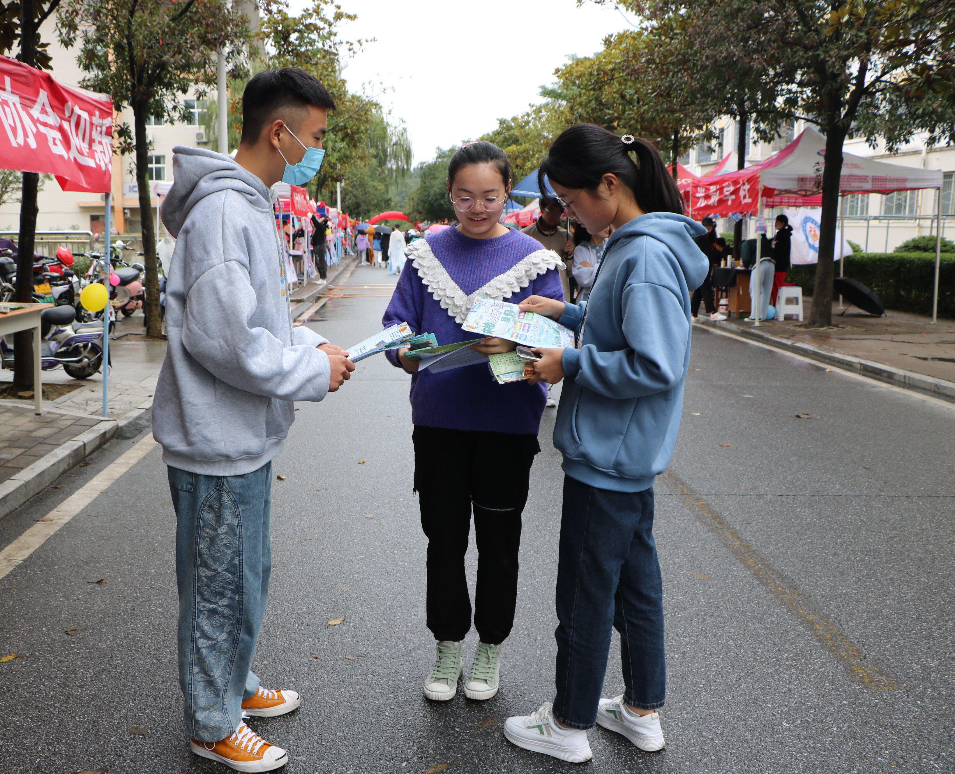 10月8号至10月10号,信阳师范学院2021—2022学年“百团大战”活动在学校思齐路拉开帷幕。金年会官网考研服务社、豫南明珠环境保护协会和南湖理论研讨社积极参与本次招新活动。招新前期,社团负责人积极筹备本次的招新活动,采用线上和线下相结合的方式宣传,让新生们对社团风采有更深入的了解。招新期间,社团通过悬挂宣传横幅、展示宣传展板、发放宣传页、抽奖赠送礼物等宣传方式赢得新生们的驻足观看、询问。社团的积极筹备和新生的踊跃报名促使本次招新活动圆满结束。