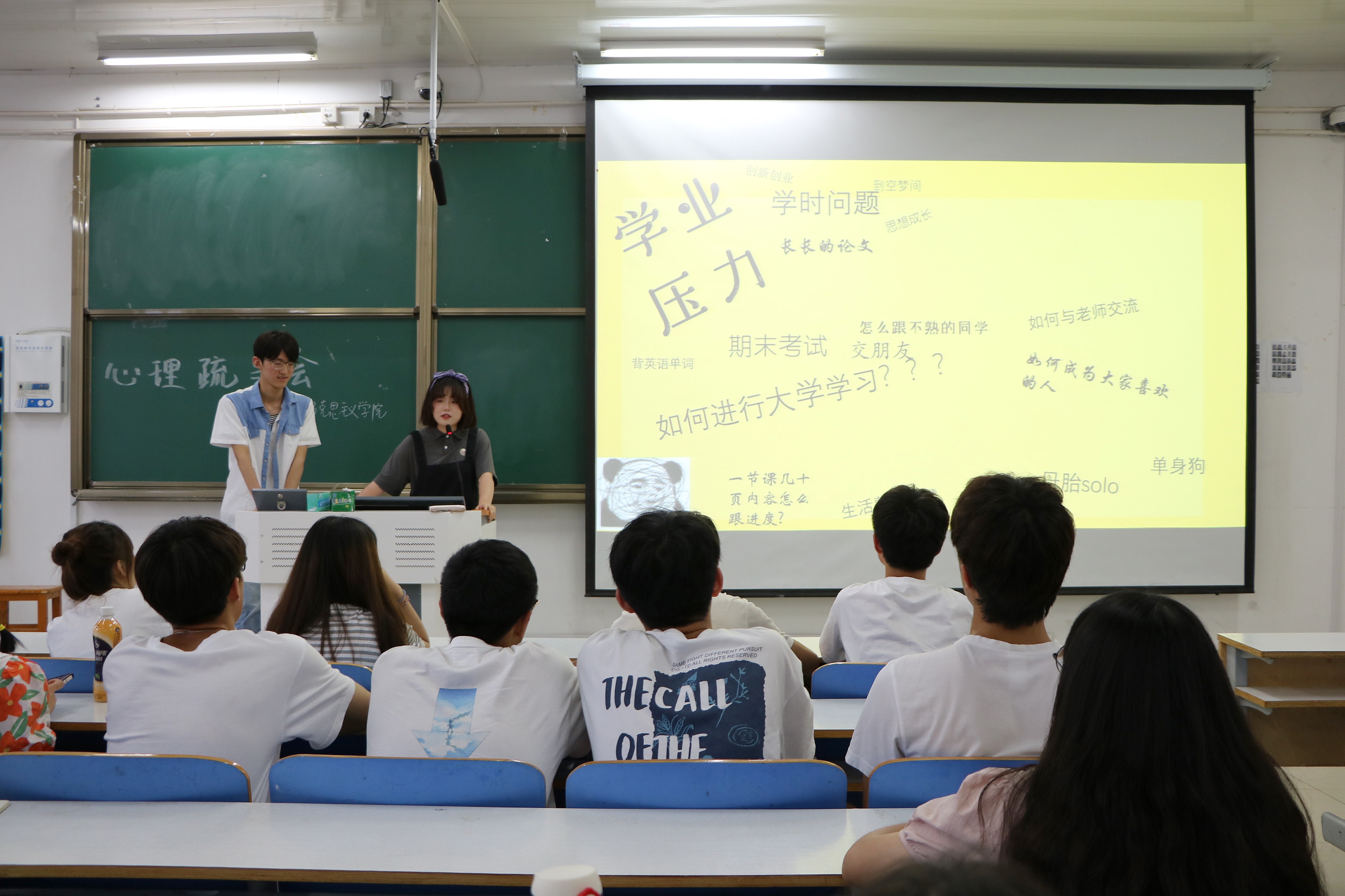 5月25日下午,金年会jinnianhuicom在社科楼516教室顺利举办“敞开心扉,拥抱阳光”心理疏导会。金年会jinnianhuicom2020级全体学生参加了本次疏导会。疏导会由金年会jinnianhuicom心理健康服务中心林兆申、王玮琳主持。