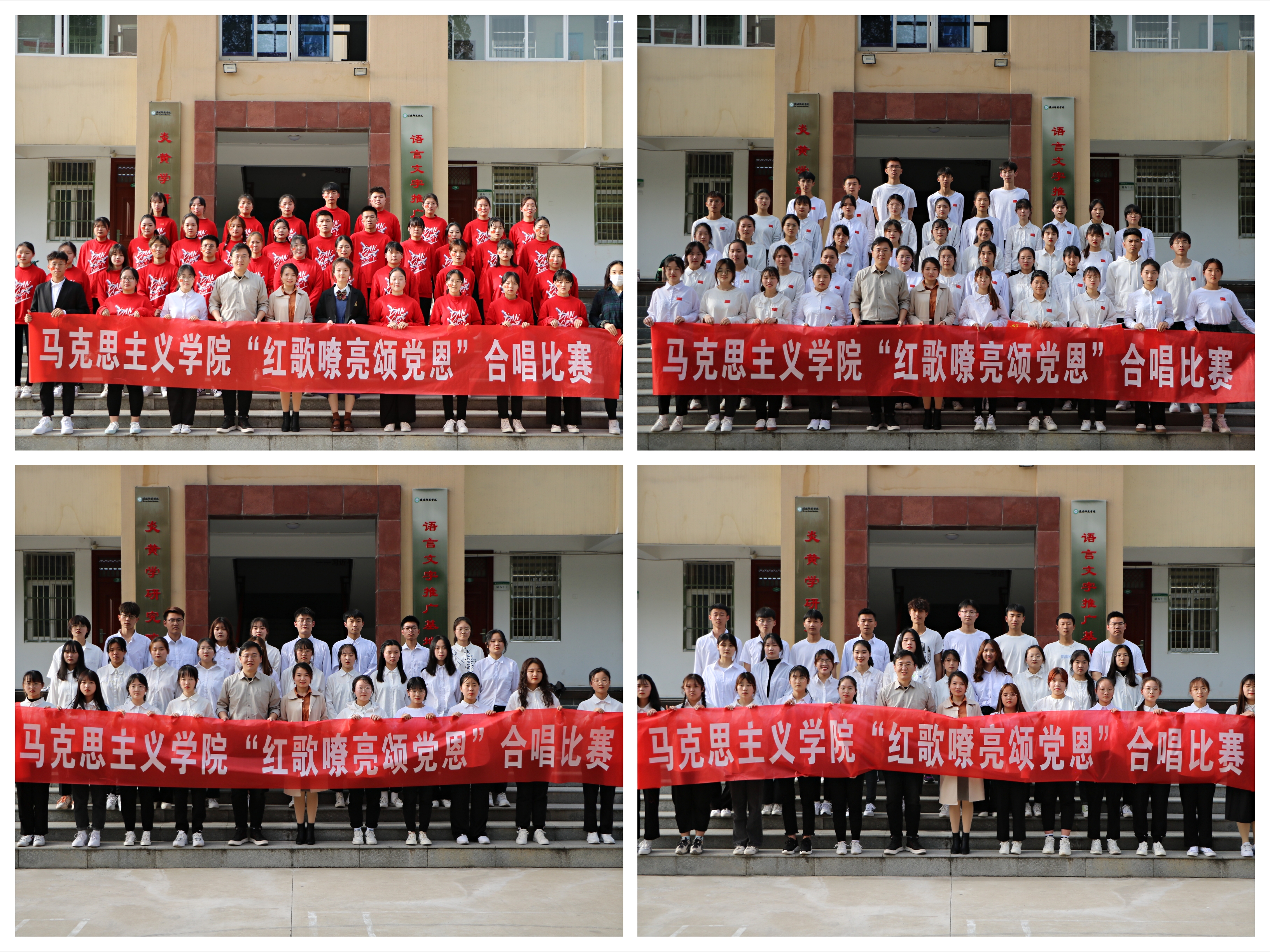 4月16日下午,金年会jinnianhuicom在教八楼前举办“红歌颂党恩”合唱比赛。金年会官网团委书记曹栋、团委老师陶青青以及学生会主席团代表成员担任比赛评委,2019、2020级全体学生共同参加本次比赛。比赛由学生会副主席袁祖顺主持。
