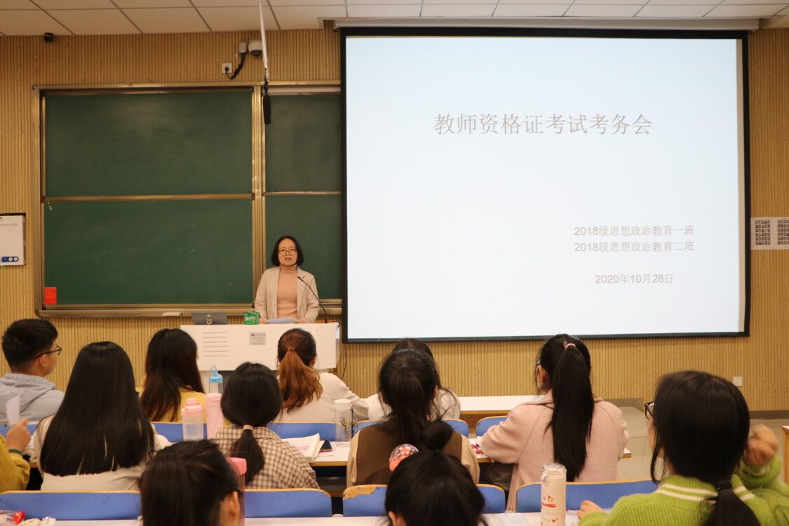 10月28日上午,金年会jinnianhuicom在社科楼515教室顺利召开教师资格证考试考务会。辅导员曹菁菁以及2018级全体学生共同参加此次班会。班会由曹菁菁主持。
