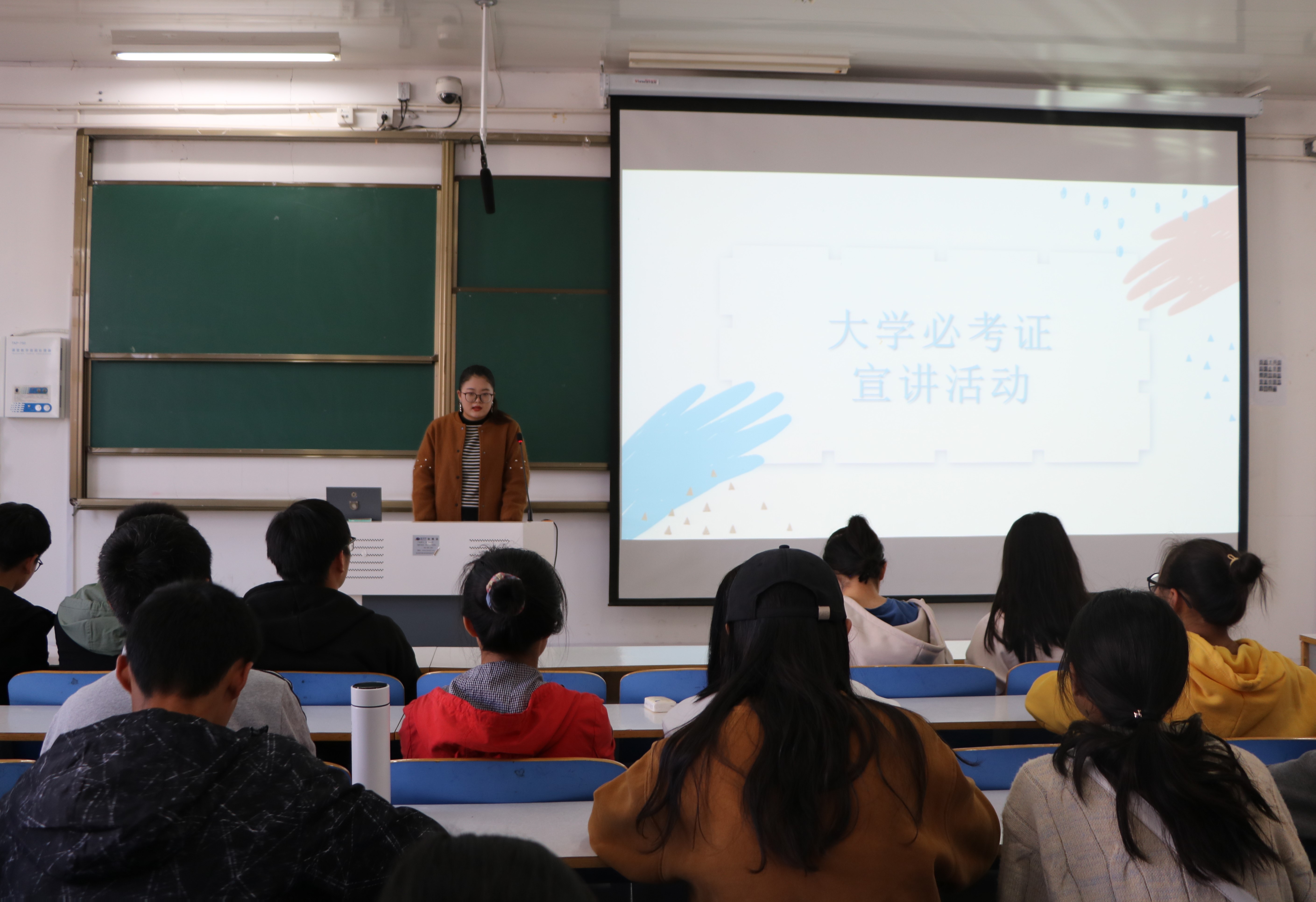 11月7日下午,由金年会jinnianhuicom考研服务社与学术部联合举办的“寒冬花开,成就自我”大学生必考证宣讲会在社科楼516教室顺利举行。金年会官网2020级全体学生共同聆听了此次宣讲。宣讲会由考研服务社社长雷诗雨主持。