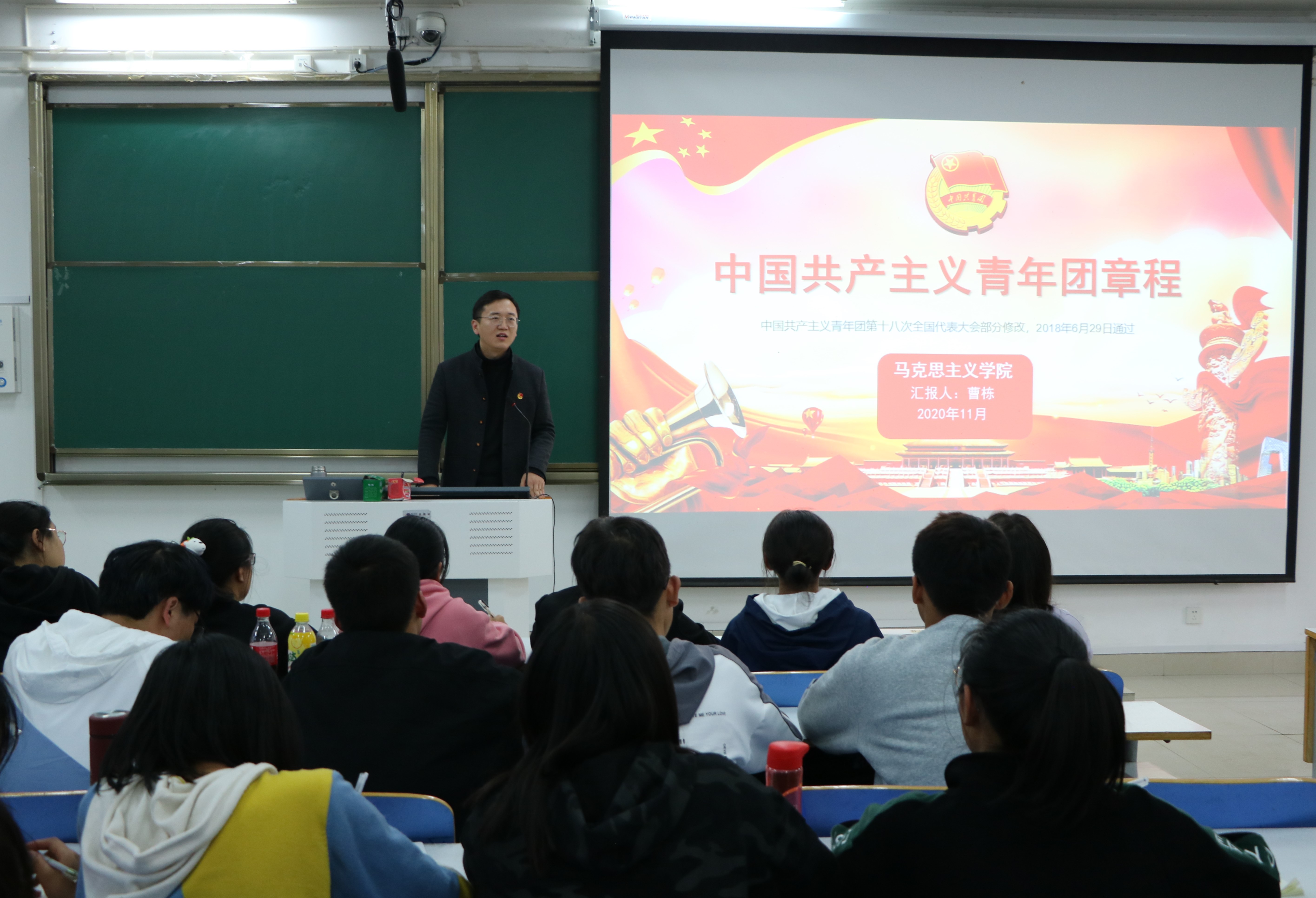 为增强金年会官网新生团员意识,明确团员的权利和义务。11月16日下午,金年会jinnianhuicom团委书记曹栋在社科楼514教室为新生团员讲授“以团章为标尺,做合格团员”主题团课。金年会官网2020级全体学生共同聆听本次团课。