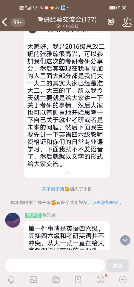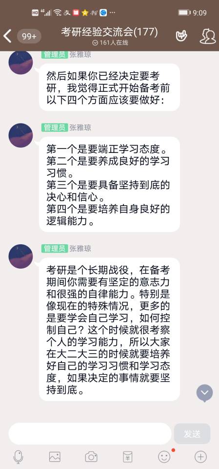 6月11日下午,金年会jinnianhuicom考研服务社通过腾讯QQ线上平台举办了“以梦为笔,绘美研途”主题考研经验交流会。金年会官网2016级优秀考研学生代表张雅琼、张美兰以及2018、2019级有意向考研的同学共同参加本次交流会。会议由考研服务社牛笑怡主持。