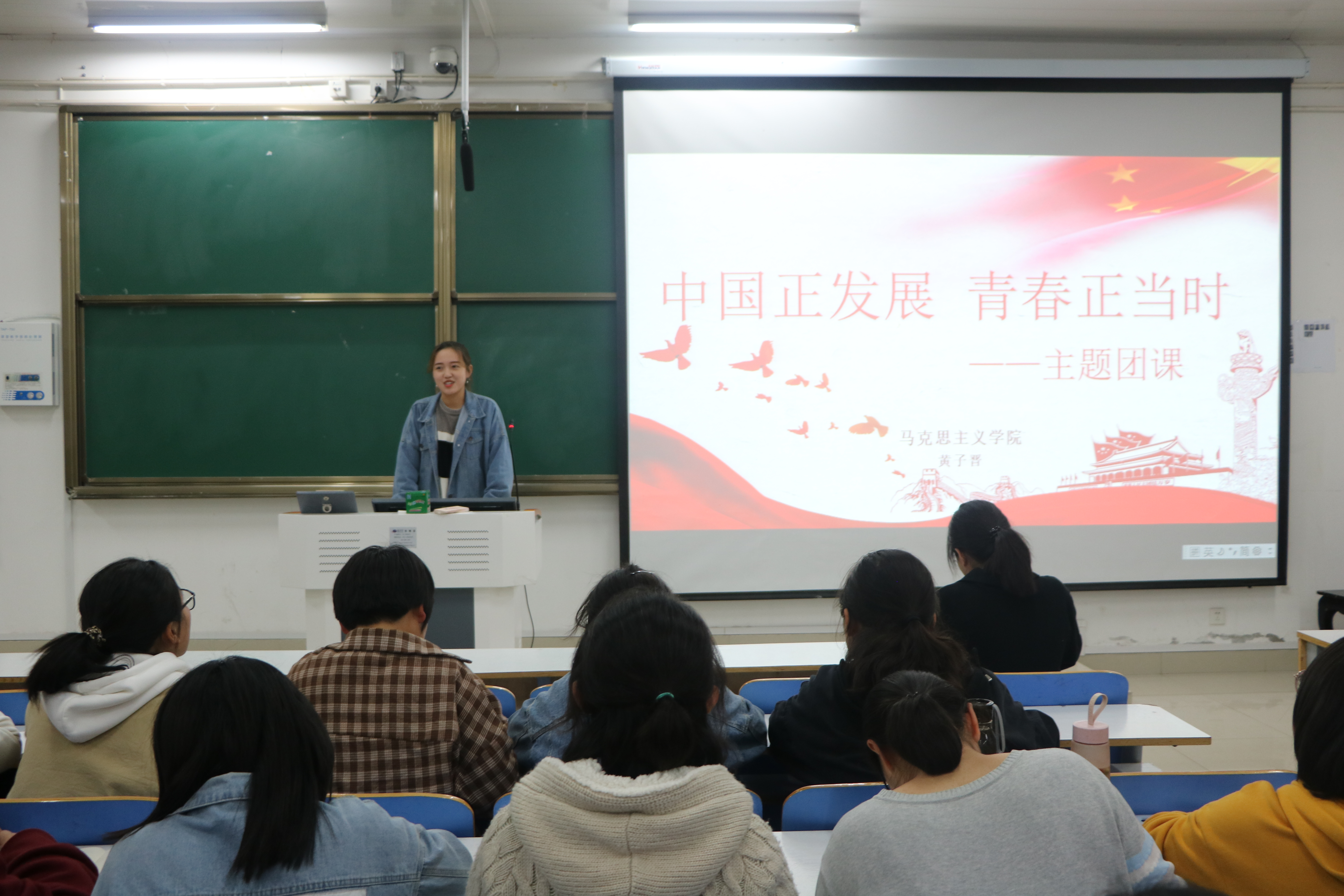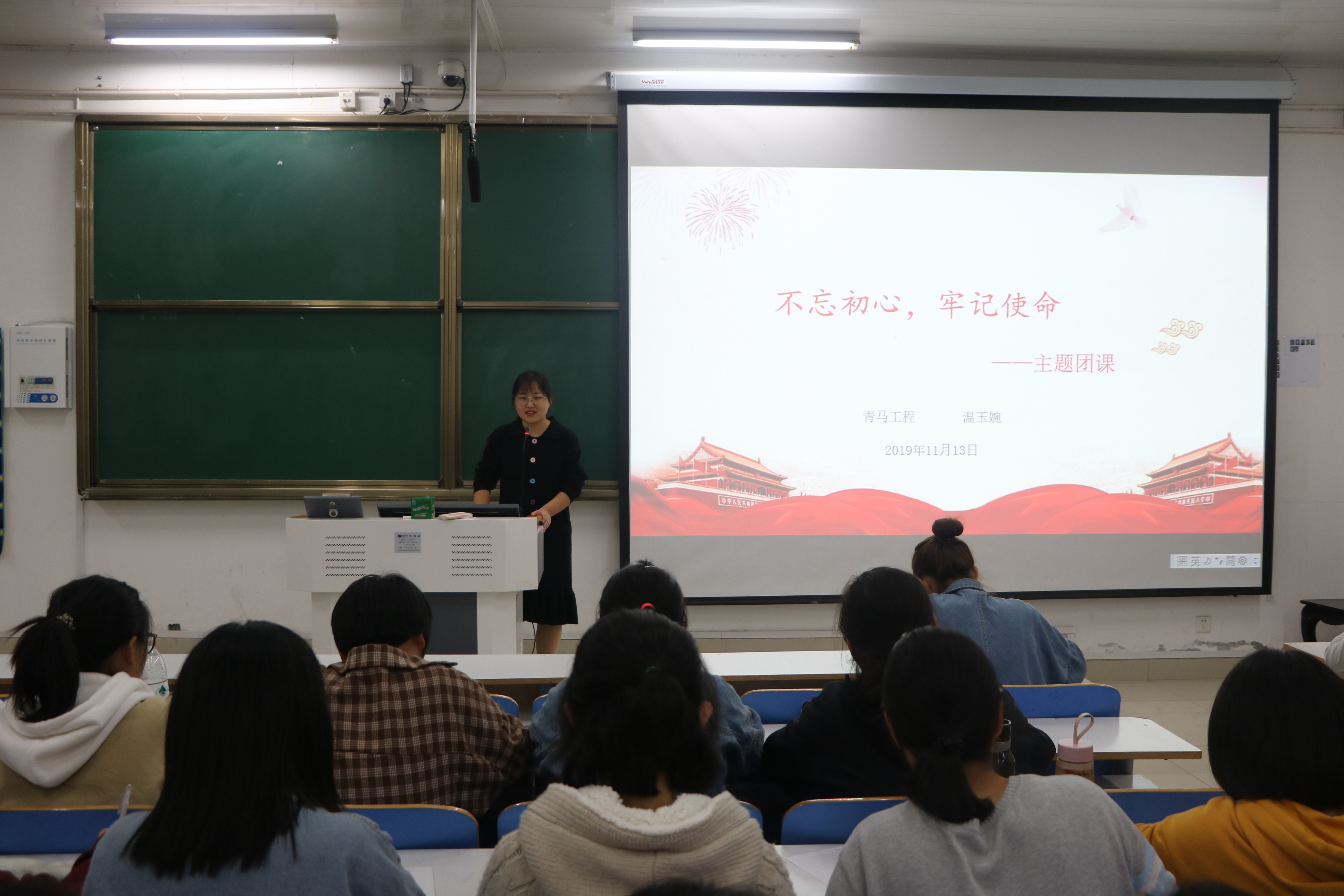 11月13日晚,金年会jinnianhuicom“青马”工程学员在社科楼516教室为金年会官网新生团员讲授团课,团委副书记肖妍杰、学生会副主席王雅纯及2019级全体团员共同聆听了本次团课。团课由“青马”工程学员代表温玉婉、黄子晋讲解。
