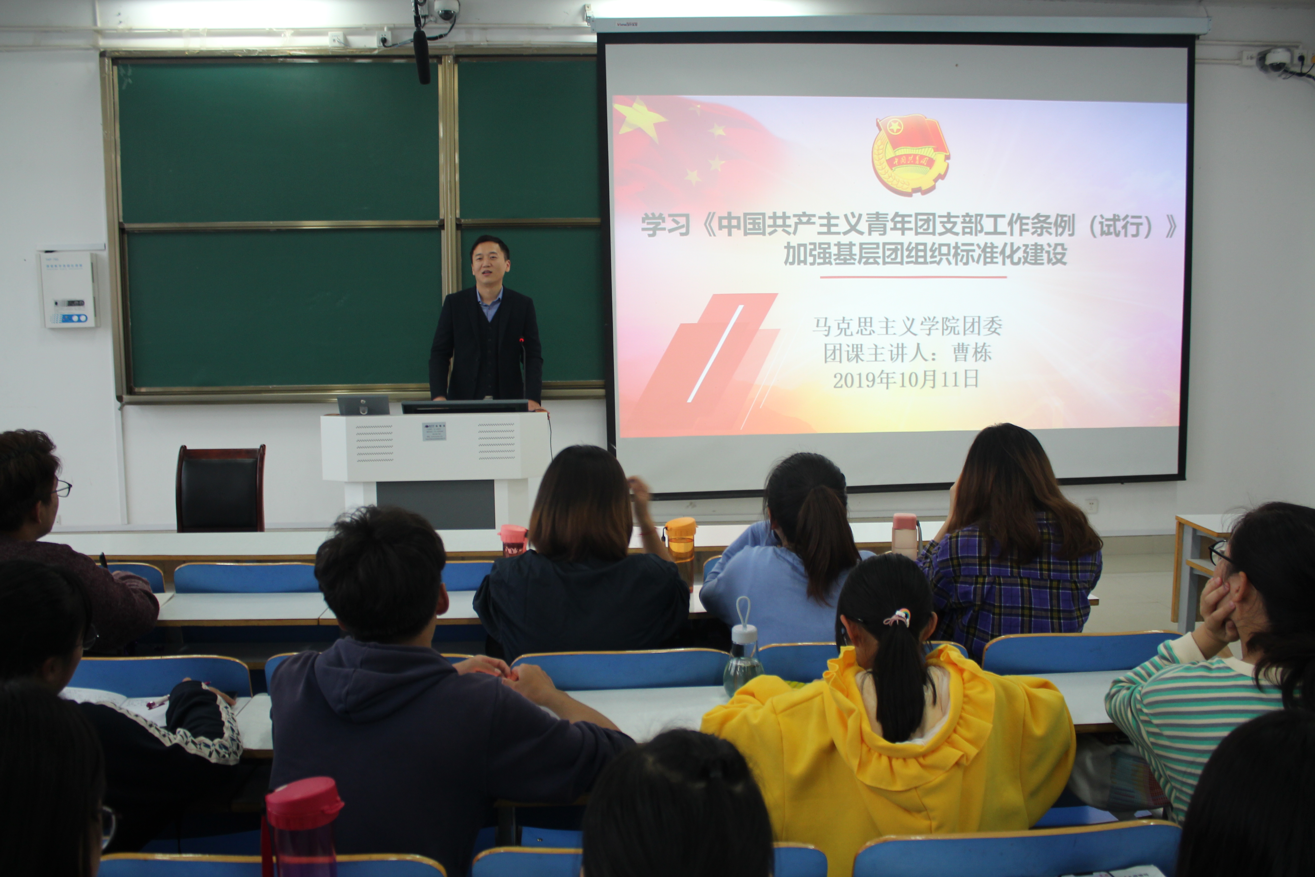 10月11日下午,金年会jinnianhuicom团委书记曹栋在社科楼514教室以学习《中国共产主义青年团支部工作条例(试行)》为题,结合新时代团的基层建设问题为学子讲授一堂高水平团课。团委副书记肖妍杰、各年级团支部委员以及团小组组长共同聆听本次团课。