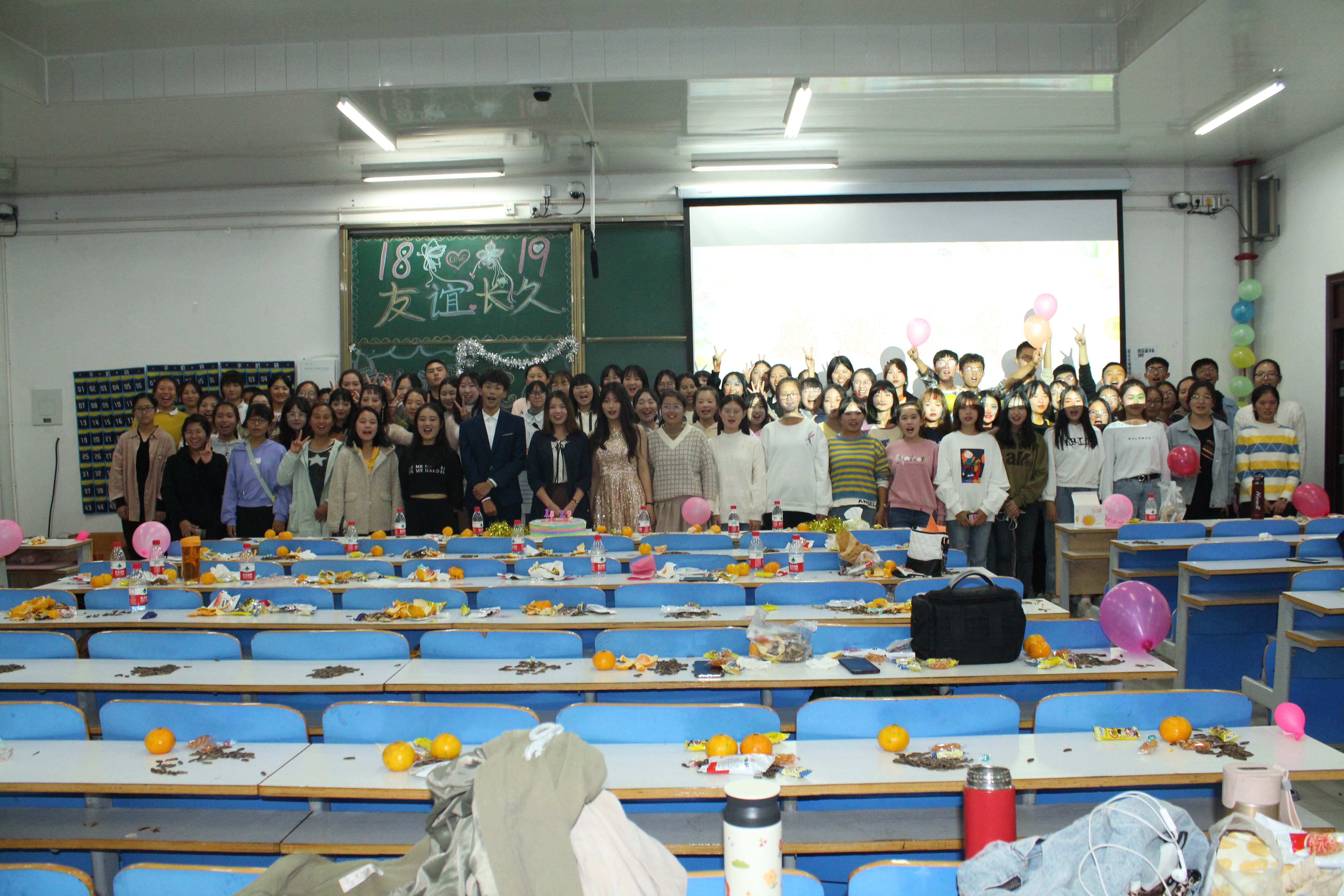 10月19日至20日,金年会jinnianhuicom在社科楼516教室成功举办2018、2019级联谊晚会。学院党委副书记何晓坚、辅导员陶青青、学生会主席团成员及2018、2019级全体同学共同观看本次晚会。