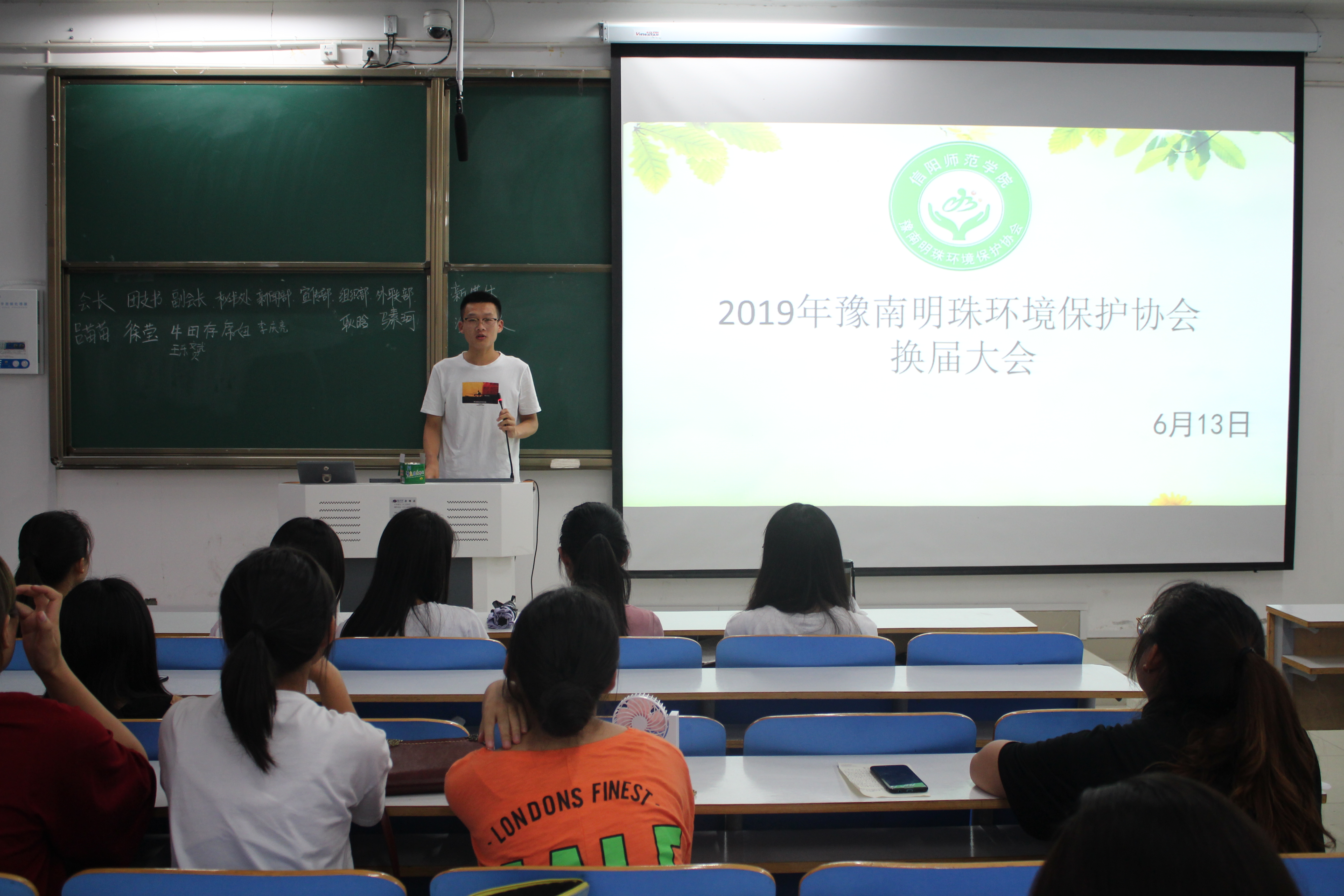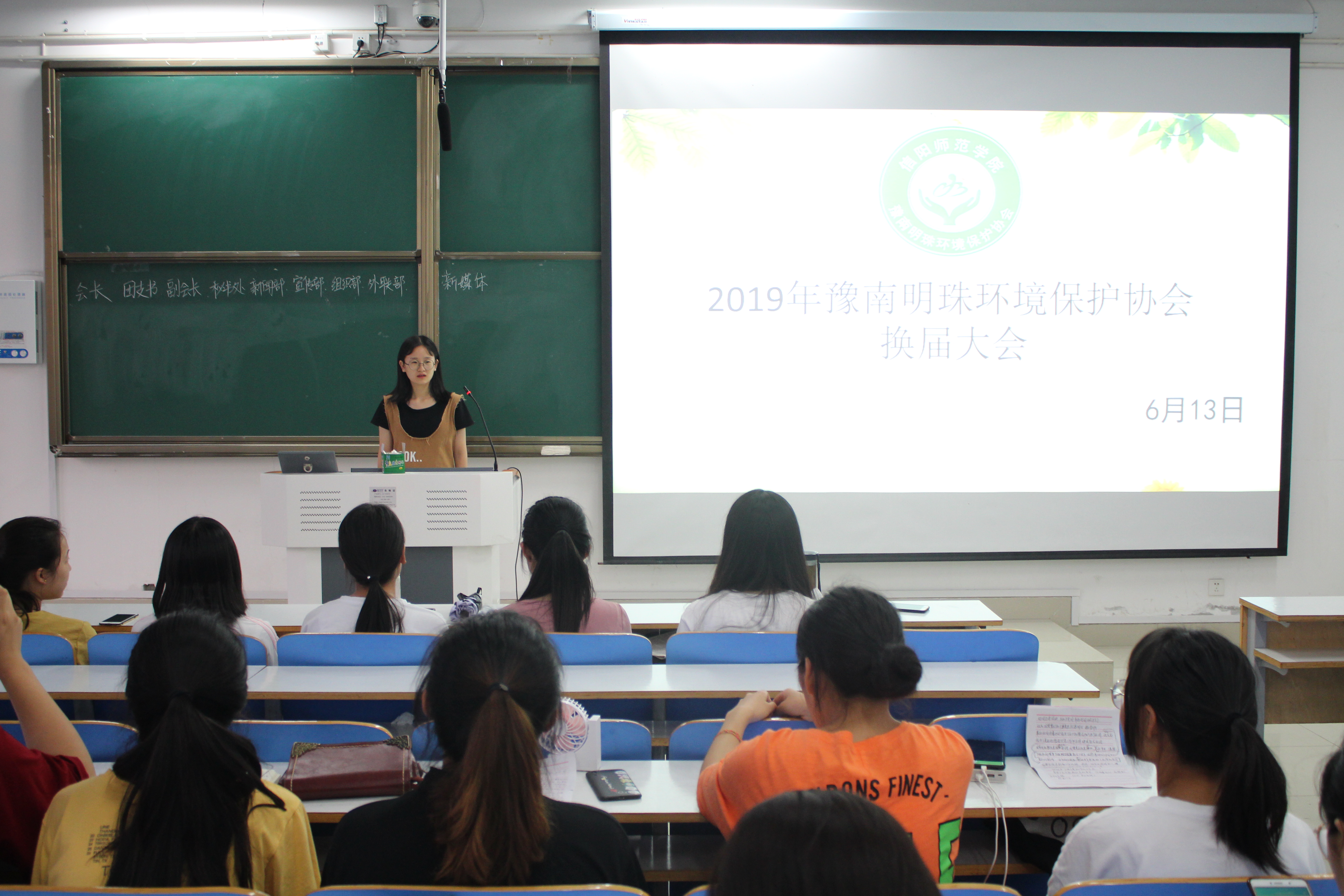 6月13日晚,豫南明珠环境保护协会在社科楼516教室顺利举行2018-2019学年社团换届竞选大会。金年会jinnianhuicom分团委学生会副主席高蓉、社长丁素艳、团支书郑梦丹及18级全体成员共同参加了此次全会。会议由丁素艳主持。