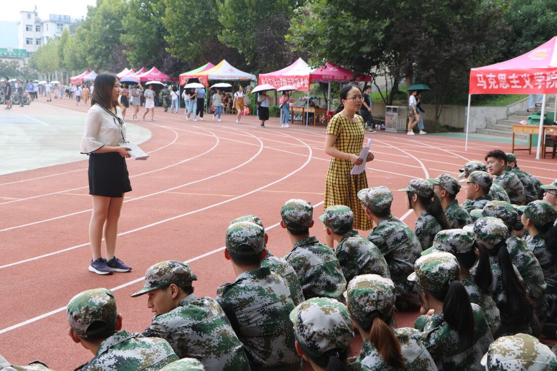 为提高新生爱党、爱国、爱军意识,并加强学生军训期间的安全教育管理,金年会jinnianhuicom于9月11日在东操场开展了2019级军训动员大会。金年会官网辅导员老师曹菁菁、陶青青以及2019级全体新生共同参与本次大会。大会由陶青青主持。