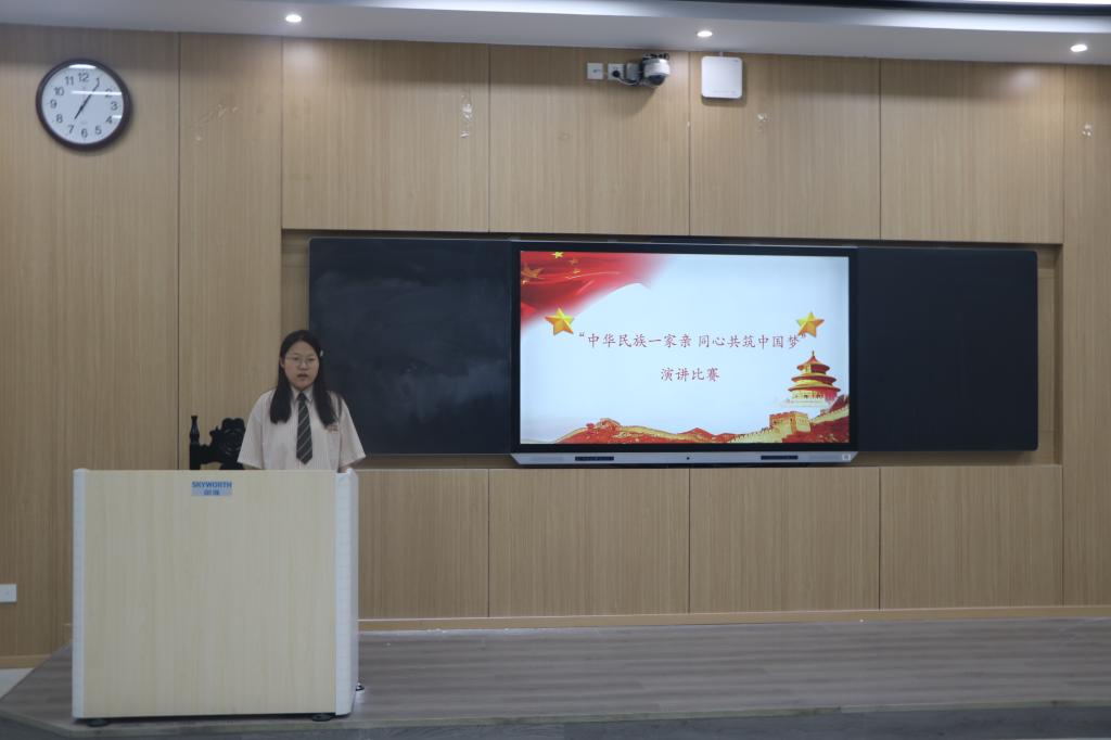在比赛中,14组选手紧扣主题,以饱满的热情、生动的语言、高昂的士气和稳健的台风,向现场观众讲述了一个个爱国爱党、拥护党的民族政策、维护民族团结的感人故事。其中,王譯慧向同学们详细介绍了金元清等古代少数民族政权的汉化政策,表明中华文化是在各民族的劳动与创造中诞生的,阐述了铸牢中华民族共同体意识这一举措的历史依据。马乐彤在演讲中指出,实现中华民族伟大复兴,首先便是要铸牢中华民族共同体意识,引导各族人民牢固树立休戚与共、荣辱与共、生死与共、命运与共的共同体理念,共同为社会主义现代化建设和民族复兴奋斗。比赛结束后,评委进行简要总评,本次演讲比赛展现了金年会官网学生对实现中华民族一家亲的共同心愿,希望同学们能够积极参加与民族团结相关的活动,自觉接受民族团结教育,增强中华民族共同体意识,找到各族人民需求的最大公约数,画出中国复兴之梦这一最大同心圆。