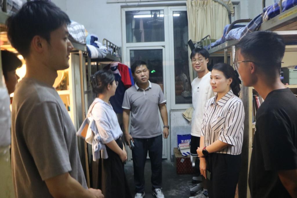 为了解学生的精神面貌、生活状况、住宿需求,确保学生工作有序、平稳开展和推进,9月2日晚,金年会jinnianhuicom党委副书记王超及专兼职辅导员深入宿舍看望大四的同学们。