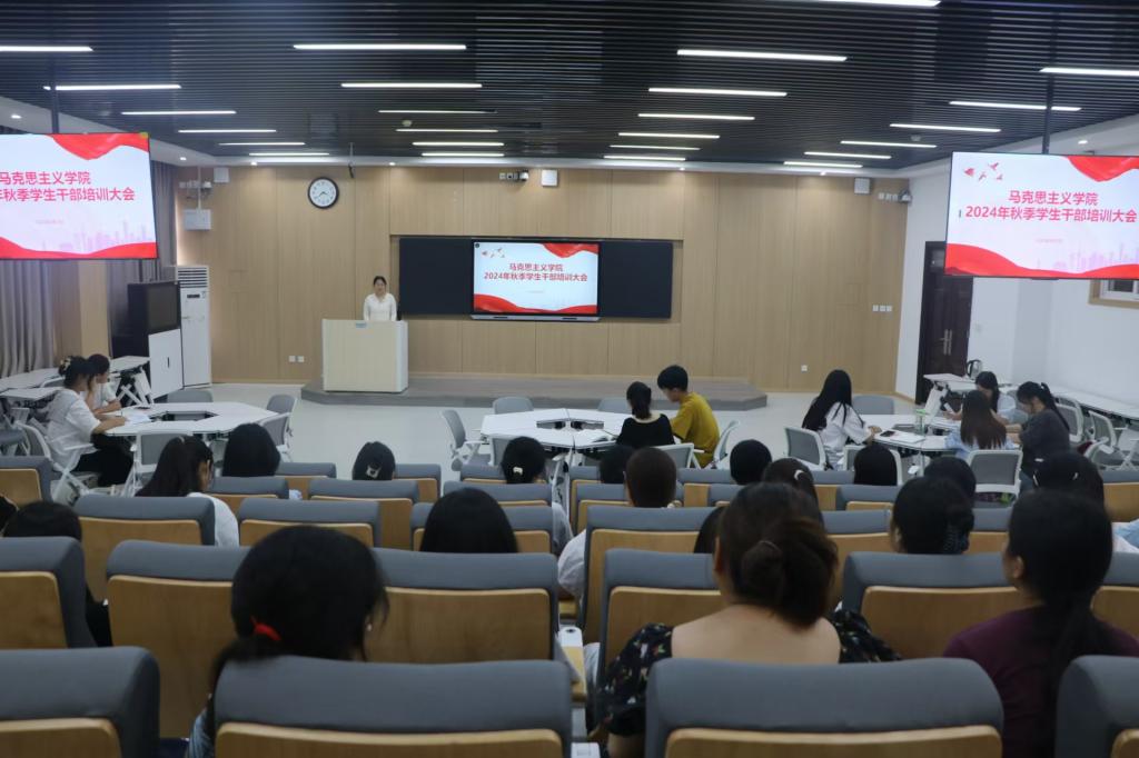 为进一步加强学生干部队伍建设,充分发挥学生干部的桥梁纽带作用,9月3日下午,金年会jinnianhuicom在社科楼516教室召开2024年秋季学生干部培训会。学院团委书记陶青青以及学生会主席团成员,各部门负责人,各班级负责人参加本次会议。会议由徐曼珍主持。