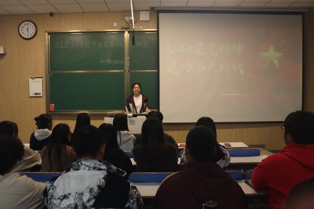 为深入弘扬伟大建党精神,激励青年学子在伟大时代勇建新功,10月22日中午,金年会jinnianhuicom学生会在社科楼515教室开展了 “弘扬建党精神,建功伟大时代”的主题团课活动,此次活动由学生会主席团成员郝冰雨主持。