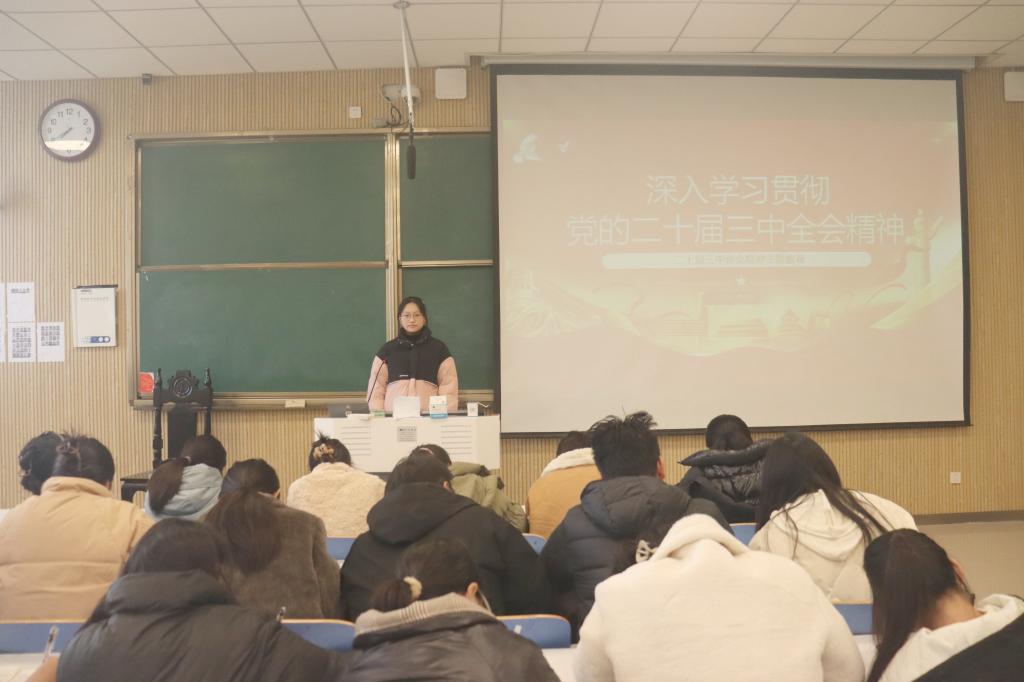 为加强金年会官网2024级新生对党的二十届三中全会精神的认识和了解,11月27日上午,金年会官网于社科楼515教室开展“学习贯彻党的二十届三中全会精神”第四次团校活动。金年会官网2024级全体新生共同参与此次活动。此次活动由分团委负责人董思甜主持。