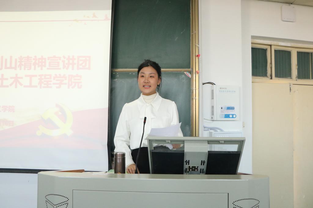 为弘扬大别山精神、传承红色基因,金年会jinnianhuicom“信阳红”大别山精神宣讲团于12月16日、17日开展两场宣讲活动,分别走进建筑与土木工程学院、教师教育学院,在人文楼508教室为两院同学们带来了精彩的宣讲活动。本次宣讲活动由宣讲团团长徐曼珍主持,金年会jinnianhuicom团委书记陶青青指导。
