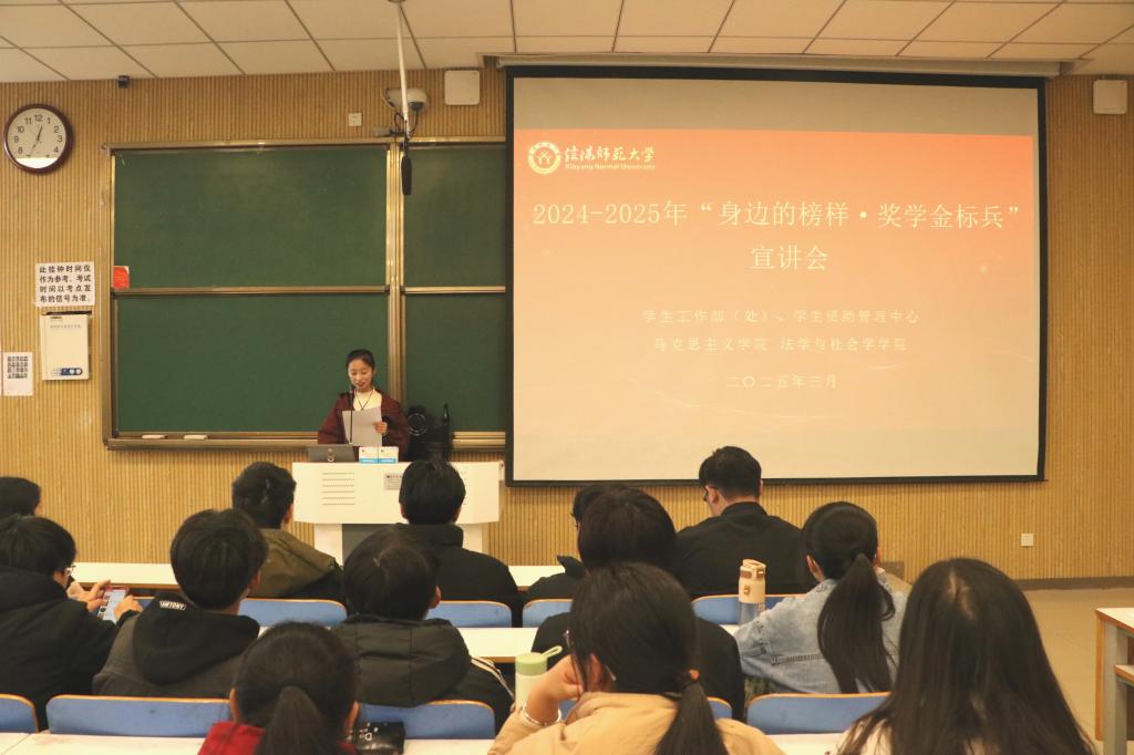 为充分发挥优秀学生的示范引领作用,激发广大学子的学习热情与进取精神,3月18日中午,金年会官网联合法学与社会学学院、学生资助管理中心和学生工作部于社科楼515教室开展“身边的榜样·奖学金标兵”宣讲会。