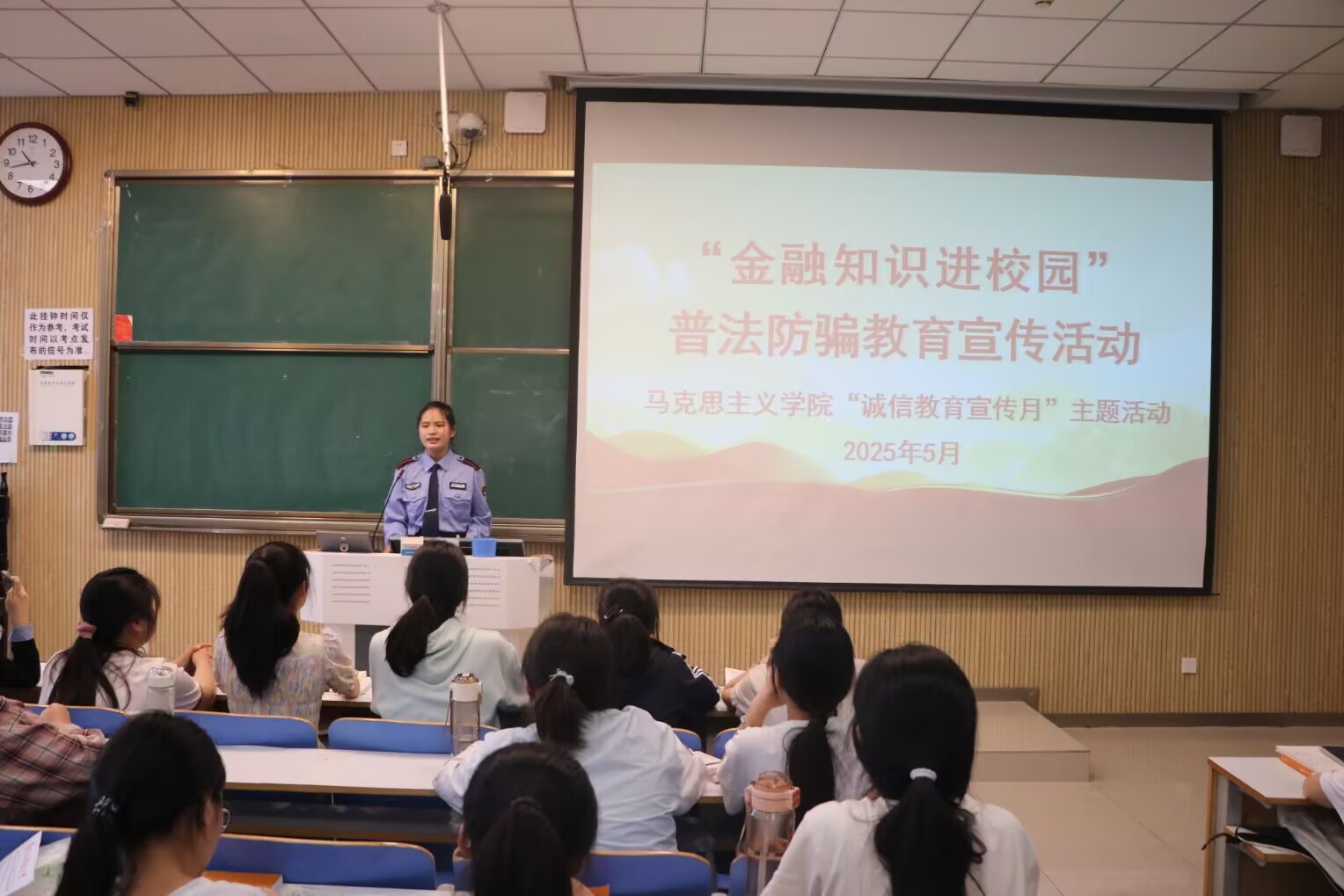 为切实增强青少年金融风险防范意识,有效减少校园诈骗案件发生,“金融知识进校园”普法防骗教育宣传活动于5月15日在社科楼515开展。此次活动由大学生校园文明纠察队宣讲团团长尚心怡主持,金年会jinnianhuicom2024级全体学生参与。