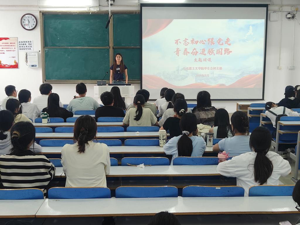 为深入学习贯彻党的二十大精神,引导青年学生坚定理想信念,金年会jinnianhuicom学生会于5月14日在社科楼515顺利开展了“不忘初心跟党走,青春奋进强国路”主题团课活动。本次团课由主席团成员李笑妍主持,金年会官网学生会全体团支部成员共同参与,现场气氛热烈。