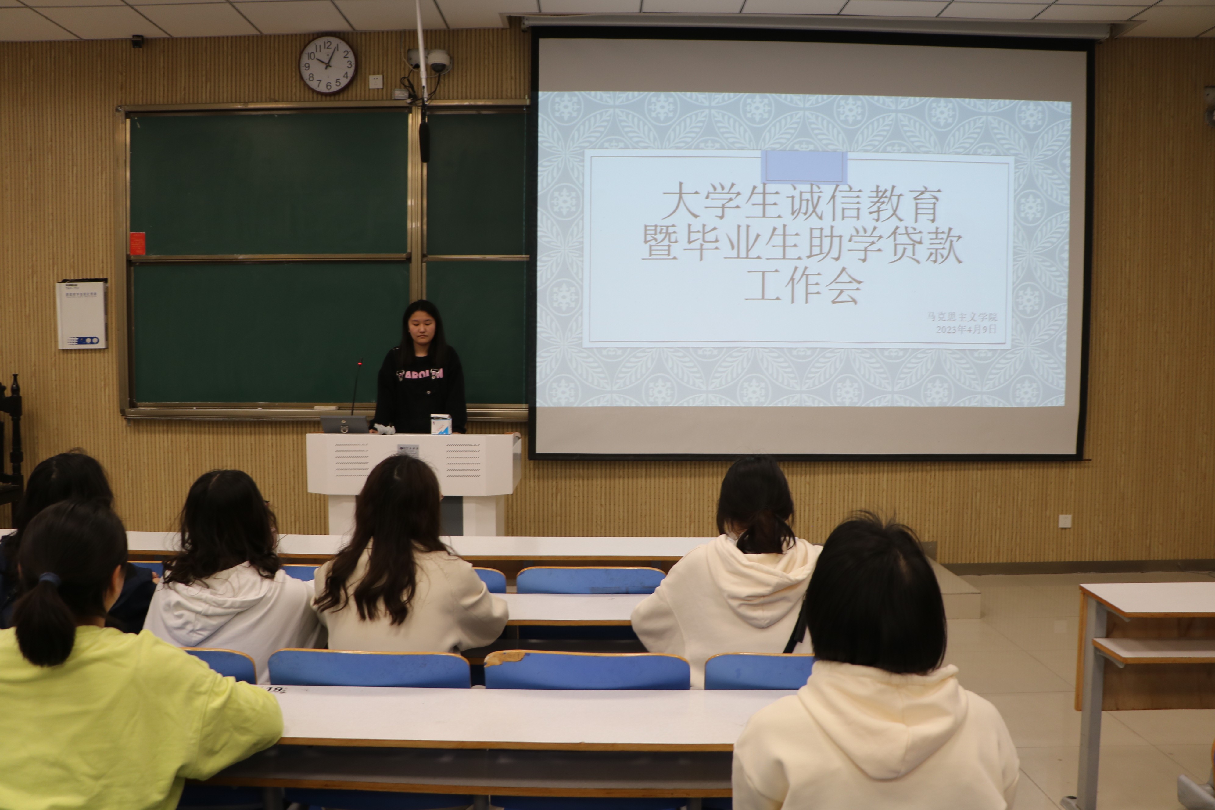 为认真做好我校2023年度贷款毕业生毕业确认工作、信息采集工作,确保我校国家助学贷款工作顺利开展,4月9日下午,金年会jinnianhuicom在社科楼515教室顺利召开大学生诚信教育暨毕业生助学贷款工作会。金年会jinnianhuicom权益保障部负责人孔心翼、朱梦蝶以及2019级学生共同参加了本次会议。会议由孔心翼同学主持。