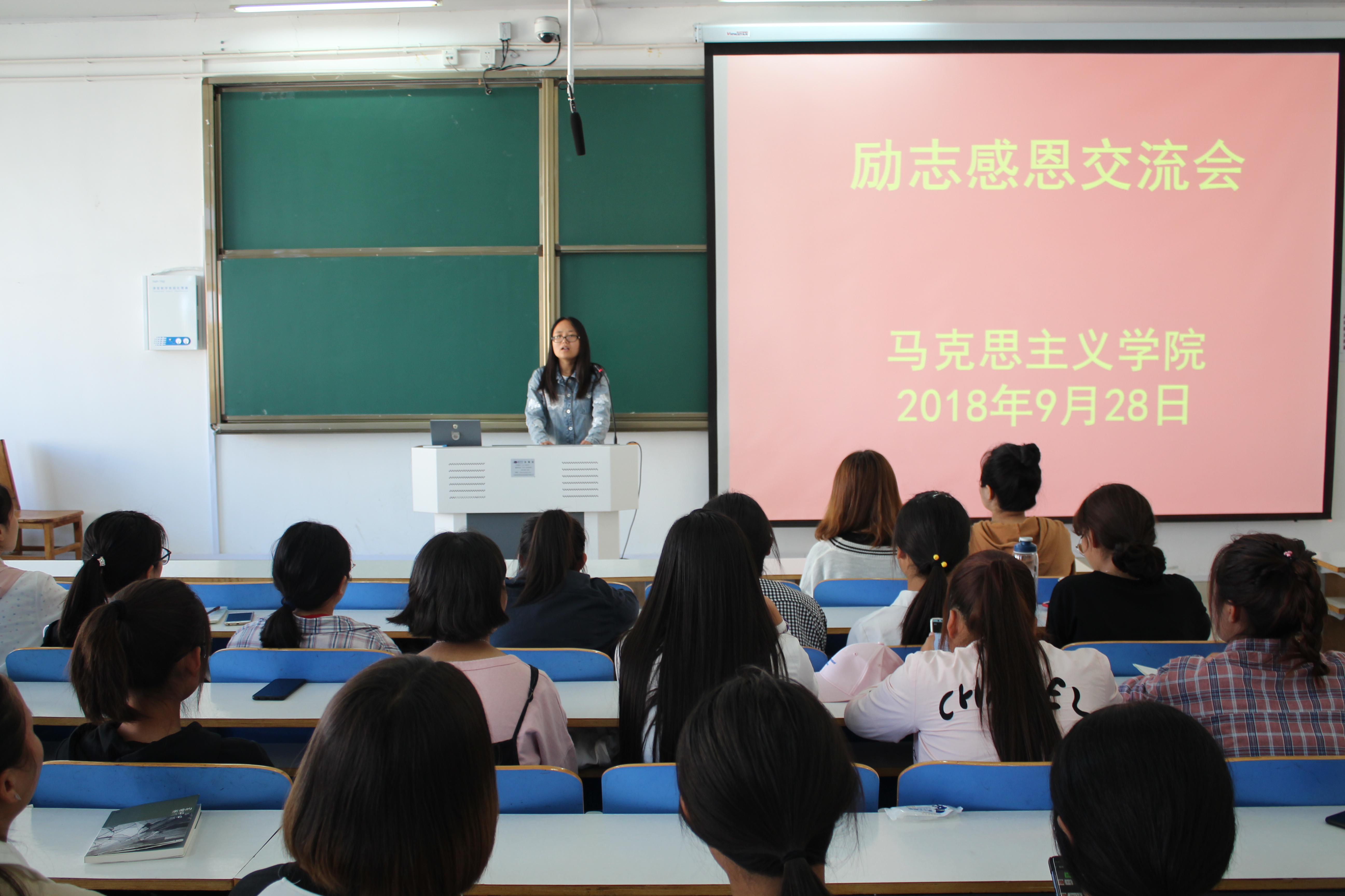为激励同学们奋发向上,9月28日,金年会官网于社科楼516教室召开励志感恩交流会。资助专员曹菁菁,2018年国励获得者胡艺博和2018级全体学生参加此次交流会。