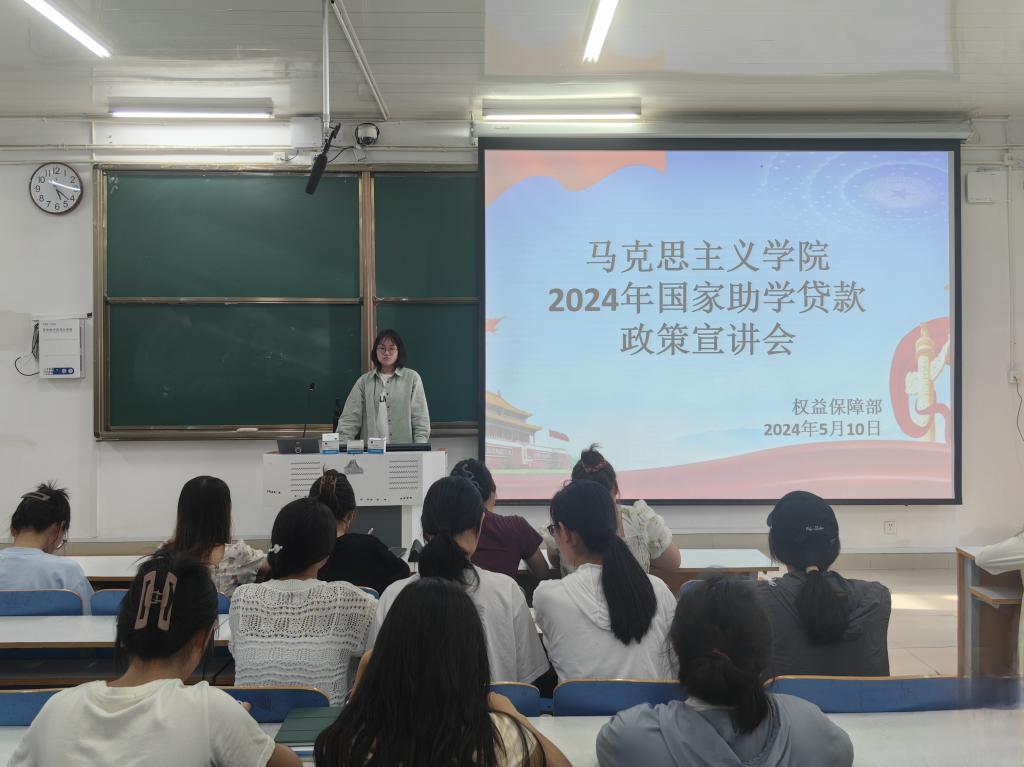 为进一步宣传国家助学贷款政策,落实助学贷款服务与资助育人工作。5月10日,金年会jinnianhuicom在社科楼514教室召开2024年国家助学贷款政策宣讲会,金年会jinnianhuicom权益保障部成员,2022级全体学生共同参加本次会议,会议由权益保障部负责人王含昱主持。