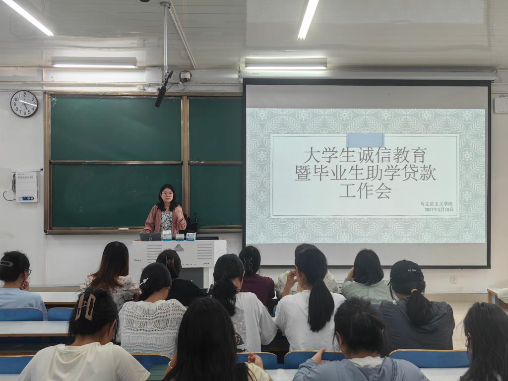为深入贯彻国家助学货款“资助育人”精神,落实为学生“办实事、办好事、解难事”,根据学校2024年度国家助学贷款学生毕业确认工作安排,5月10日下午,金年会jinnianhuicom在社科楼514教室召开了大学生诚信教育暨毕业生助学贷款工作会。马克思主义学院团委老师高小佳和2020级全体学生共同参加此次会议。会议由权益保障部负责人靳澍畅主持。