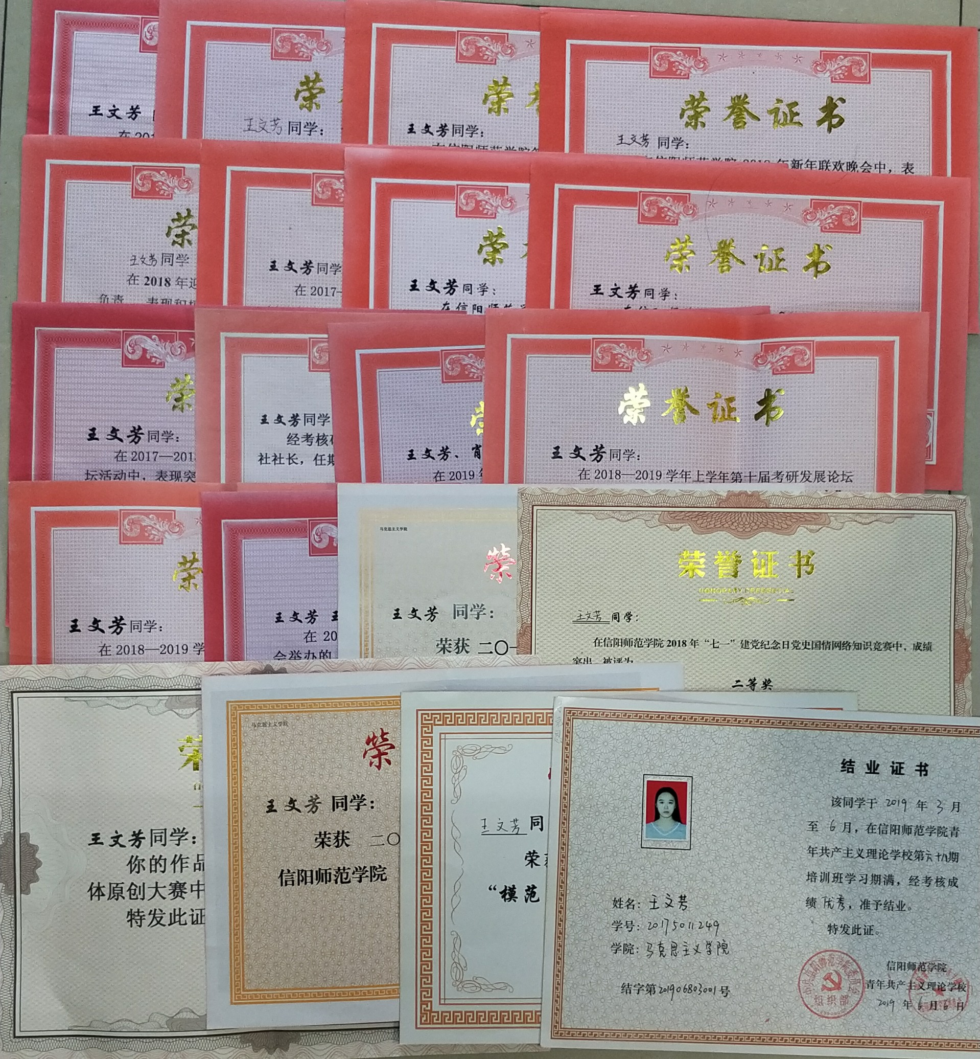 在学生工作方面,积极参与,脚踏实地。大一刚入学,在校学生会学学术科技部担任干事,在考研服务社担任组织部干事,大二在考研服务社担任社长,大三开学初期,担任2019级思想政治教育二班新生班代,现任金年会jinnianhuicom分团委学生会主席。积极参与学校活动,参与组织、服务学校及学院多项活动,例如信阳师范学院迎新活动、信阳师范学院元旦晚会、信阳师范学院“诗词大会”、信阳师范学院“翰林学坛”、考研经验流会、英语四六级模拟考试、祈福考研等活动。曾获荣誉如“模范团干部”、“模范干部”、“优秀工作者”、“优秀志愿者”等。