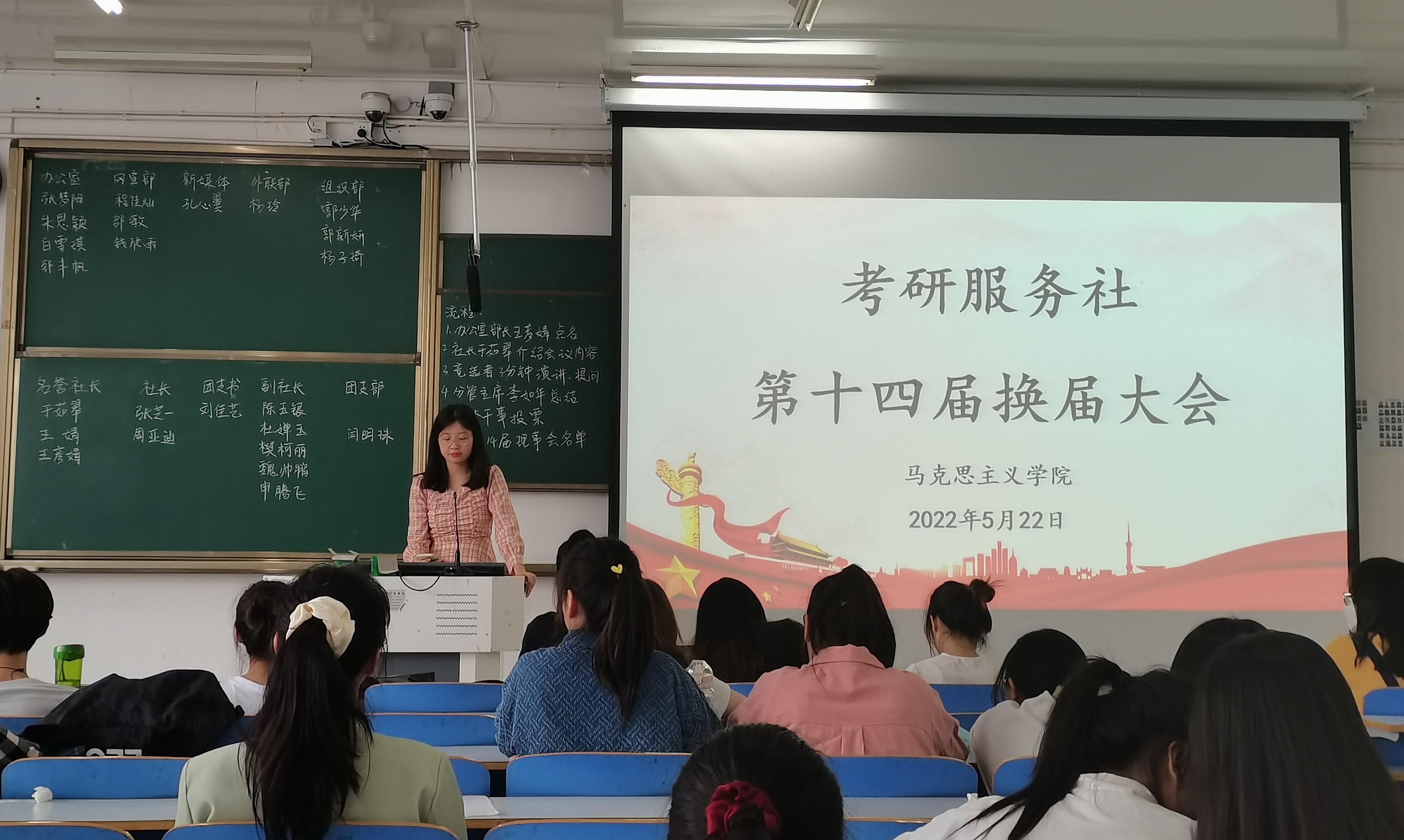 首先,考研服务社社长于茹翠对上一届社团工作做了简要的回顾与总结,并对新一届考研服务社成员提出了殷切的寄语。然后,各位竞选者依次进行自我介绍,并且表述了对自己所竞选岗位的认识以及后续工作的规划。随后,各部门负责人对竞选人进行提问,同学们积极互动,现场气氛十分热烈。在这个过程中,每位竞选者都表现出对自己所竞选职位的热爱以及日后能够做好自己的本职工作的信心。秉承公平、公正的原则,全体社团干事现场进行投票并确定最终新一届各部门负责人。