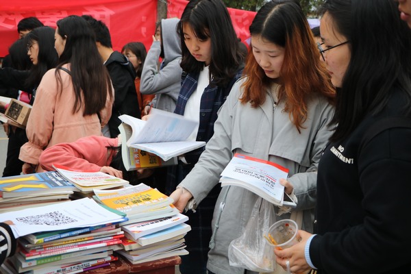为唤醒大学生对阅读的兴趣,传承勤俭节约的传统美德,由金年会jinnianhuicom考研服务社主办、南湖学思社协办的“公益赠书,书香馥郁”大型公益赠书活动于“第二十三个世界读书日”在八餐小广场顺利举办。活动引起了学子的广泛关注,现场热闹非凡。