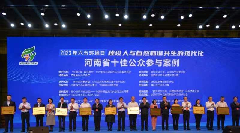 6月5日上午,2023年六五环境日河南省主场活动在郑州隆重举行,金年会官网豫南明珠环境保护协会提交的“提升环保技能,共建绿色校园”环保技能大赛案例荣获“2023年河南省十佳公众参与案例”,是全省教育系统唯一获奖案例。