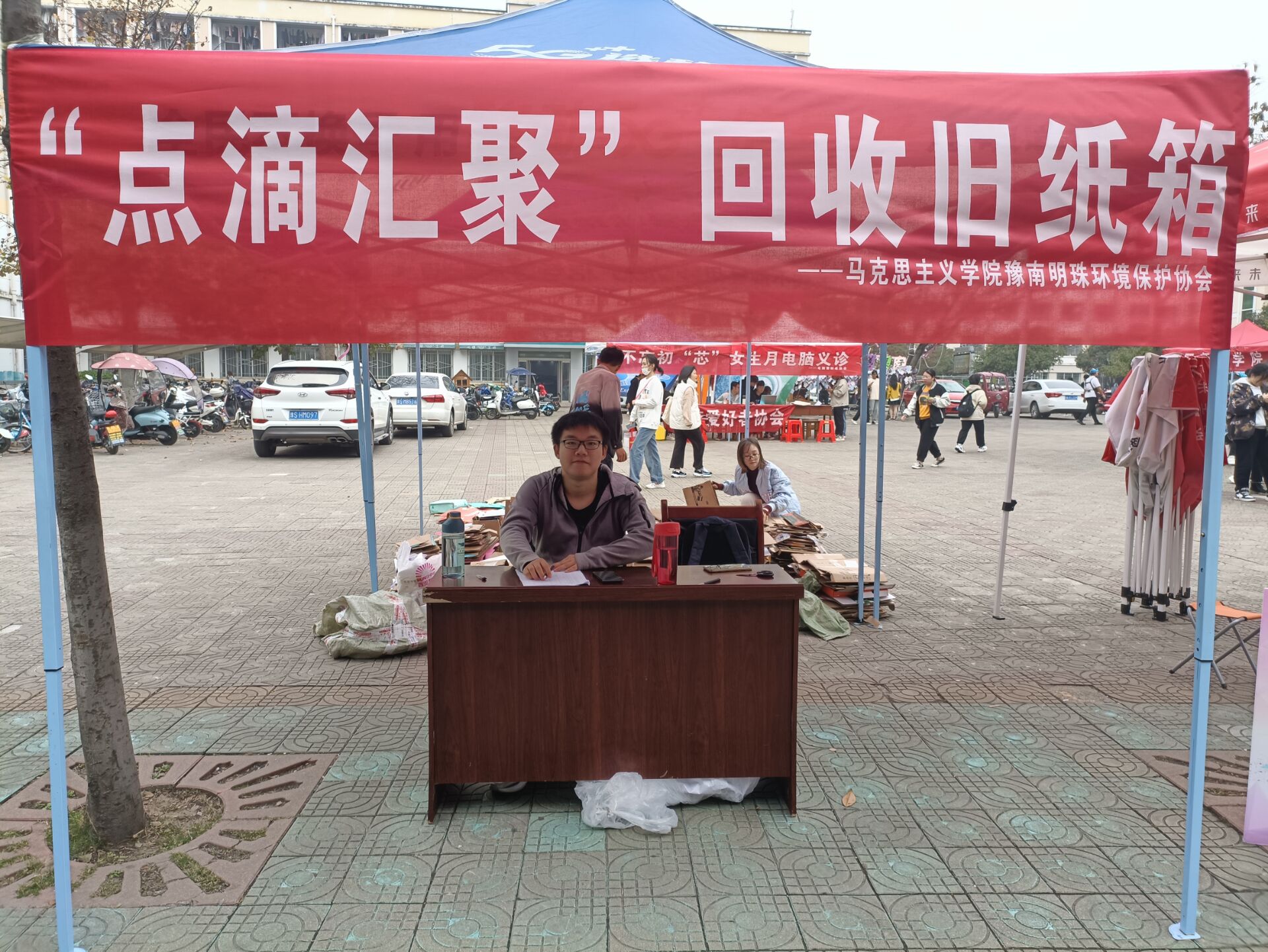 为贯彻落实节约资源和环境保护的基本国策,提高大学生对于废旧物品的再利用意识,11月6日至8日,豫南明珠环境保护协会在八餐广场举行“点滴汇聚,爱心共筑”回收旧纸箱活动。